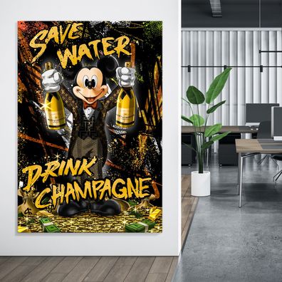 • Luxusmodemarke Micky Maus Reich, Champagne POP ART Kunst, Poster, Leinwand, Acrylglas