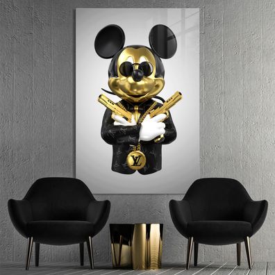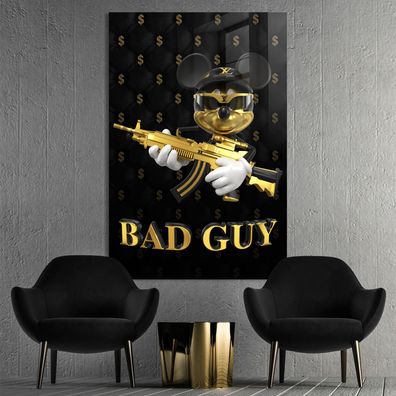 • Micky Maus BAD GUY, Waffen Dollars Goldene Wandbild, Poster, Leinwand, Acrylglas