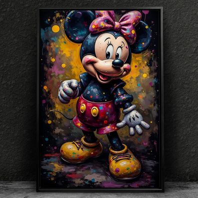 • Minnie Maus in Farben Kunst, Bunte Wandbild, Acrylglas, Poster, Leinwand Nr12