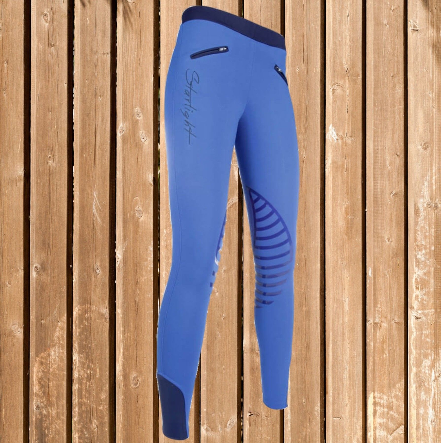 HKM HKM Kinder Reitleggings Starlight, Silikon Kniebesatz, Reithose, kornblau