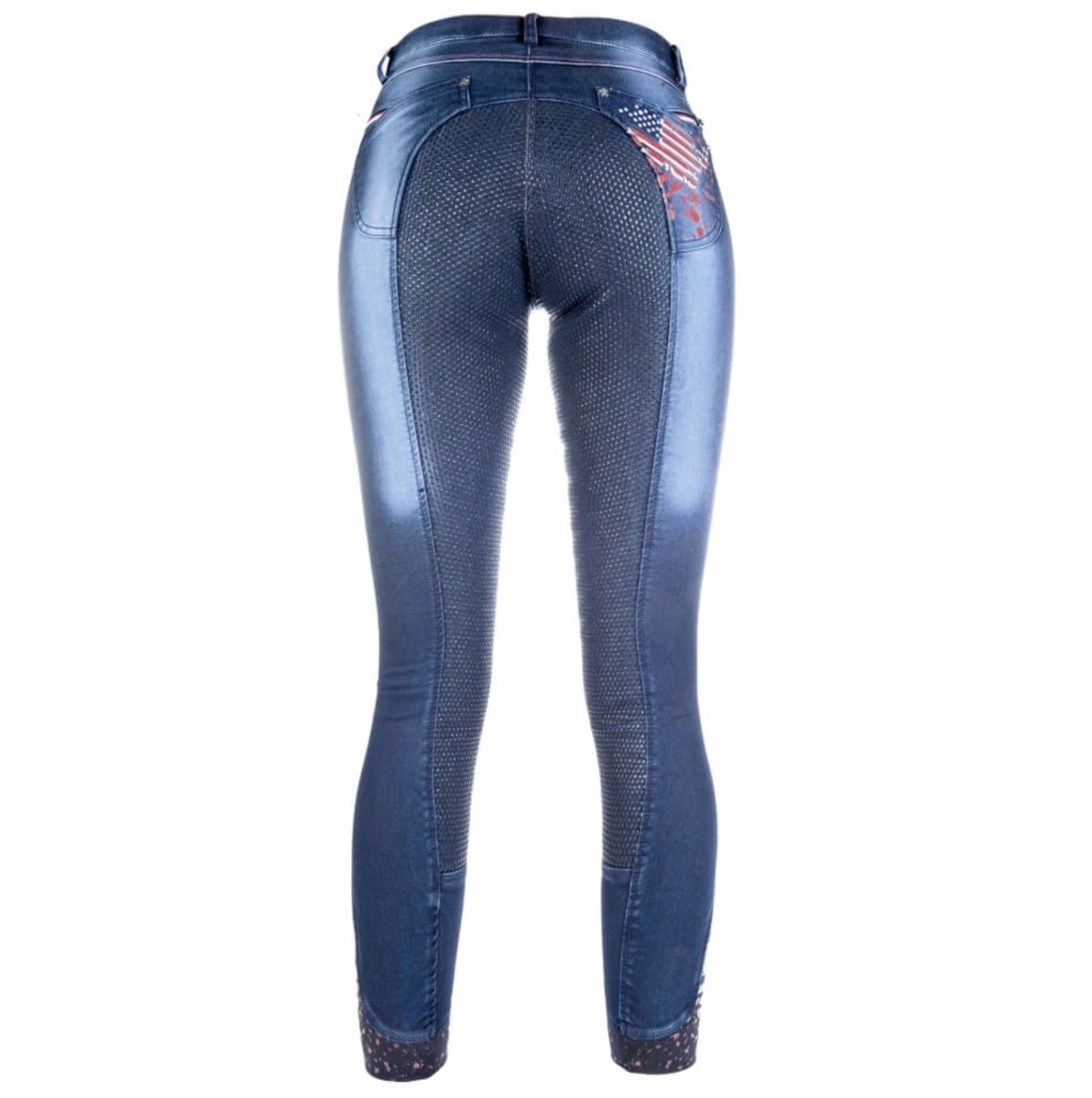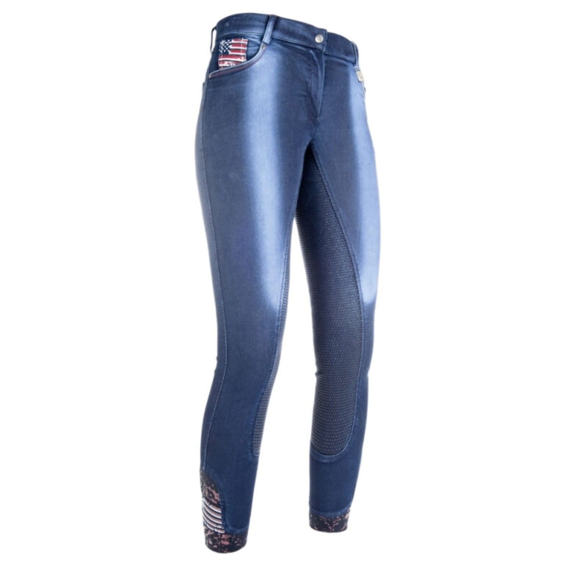 HKM HKM Reithose Jeans mit USA Print, Stiefelreithose Grip Vollbesatz, USA Denim