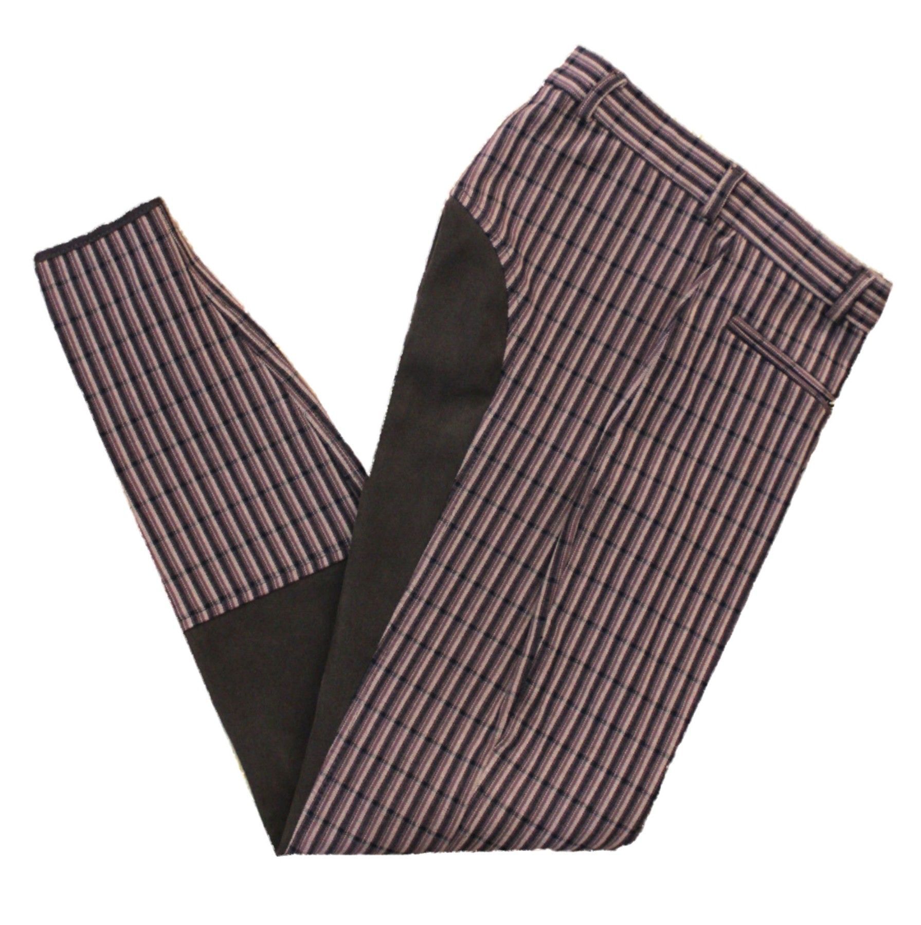 HKM Reithose grau-schwarz-rot-Karo, Damen Vollbesatz Stiefelreithose 42
