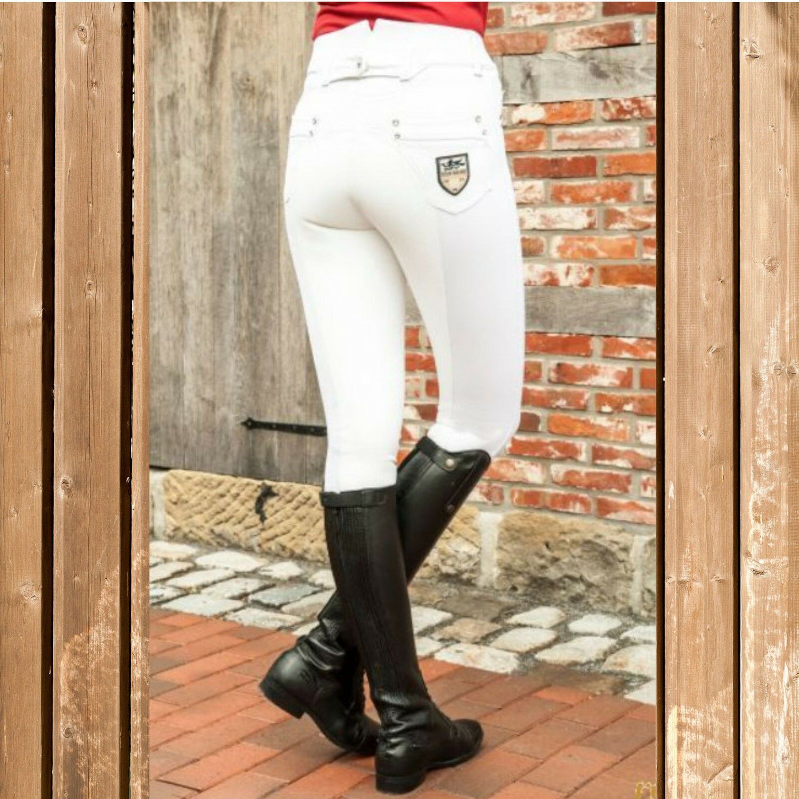 Busse Reithose, eliwel Stiefelreithose, Turnierreithose Vollbesatz, weiß