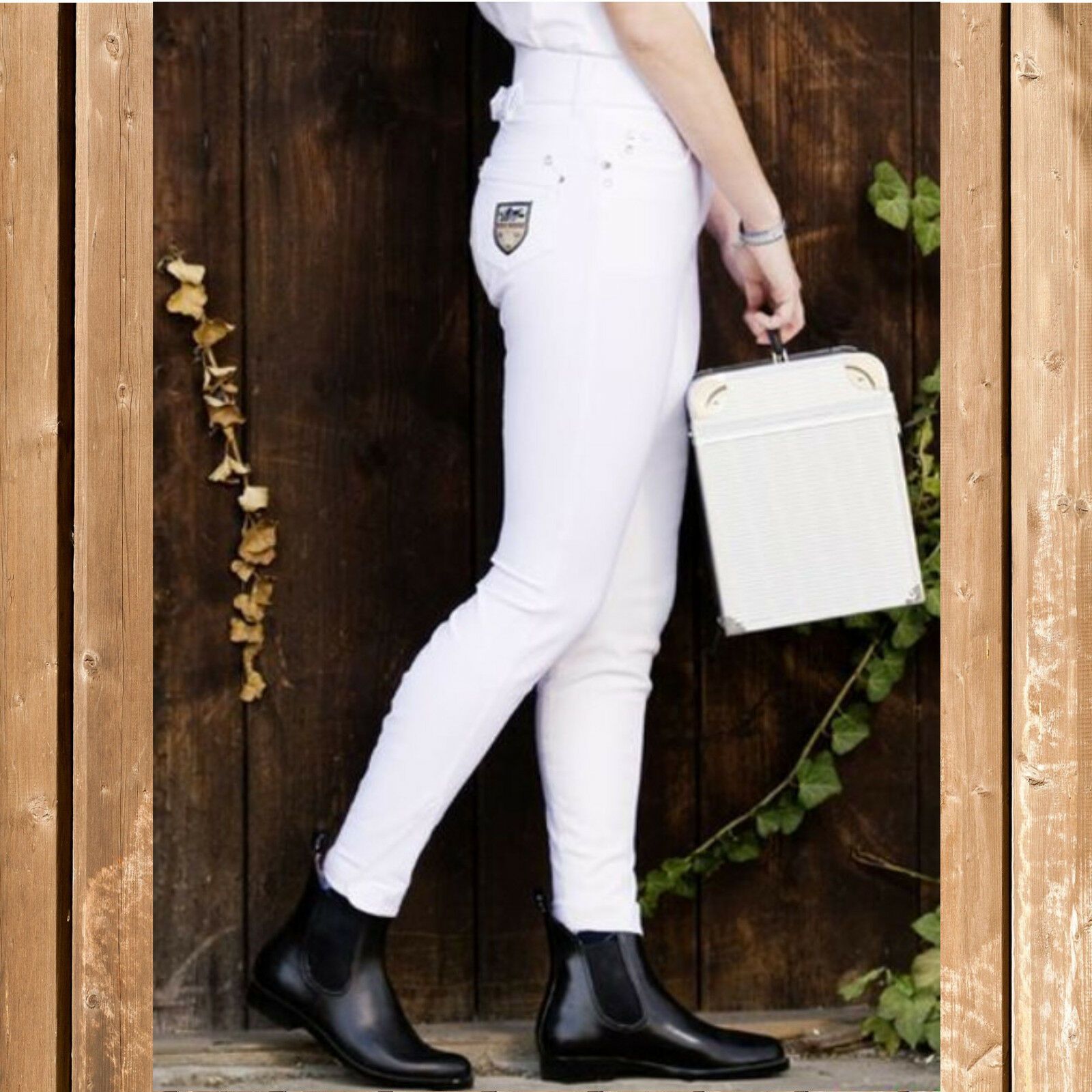 HKM Turnierreithose, Stiefelreithose Miss Blink, Hochbund, weiß, Gr. 36 - Fehler