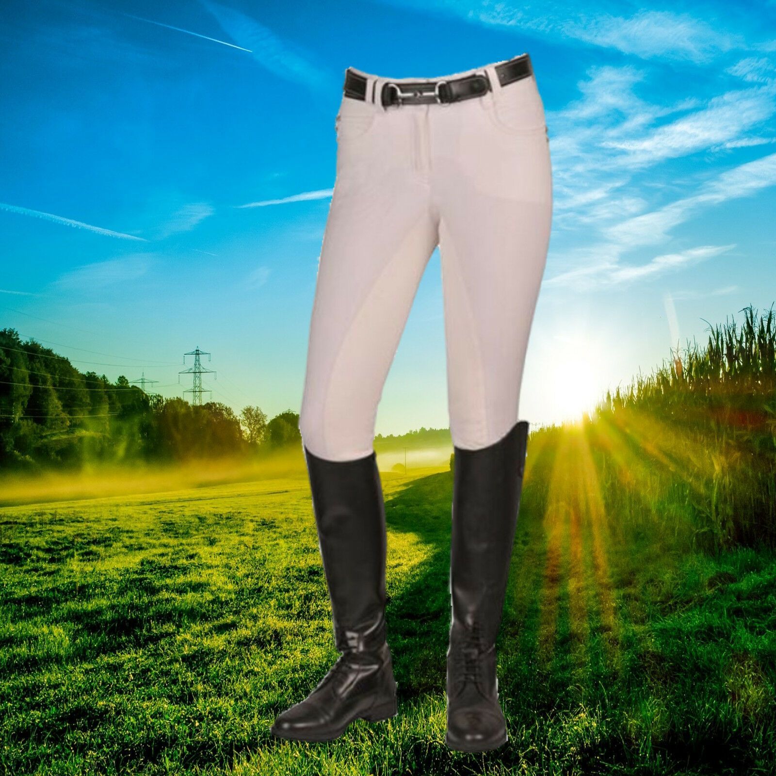 Reithose Sonnenreiter, Turnierreithose, Stiefelreithose Vollbesatz, weiß