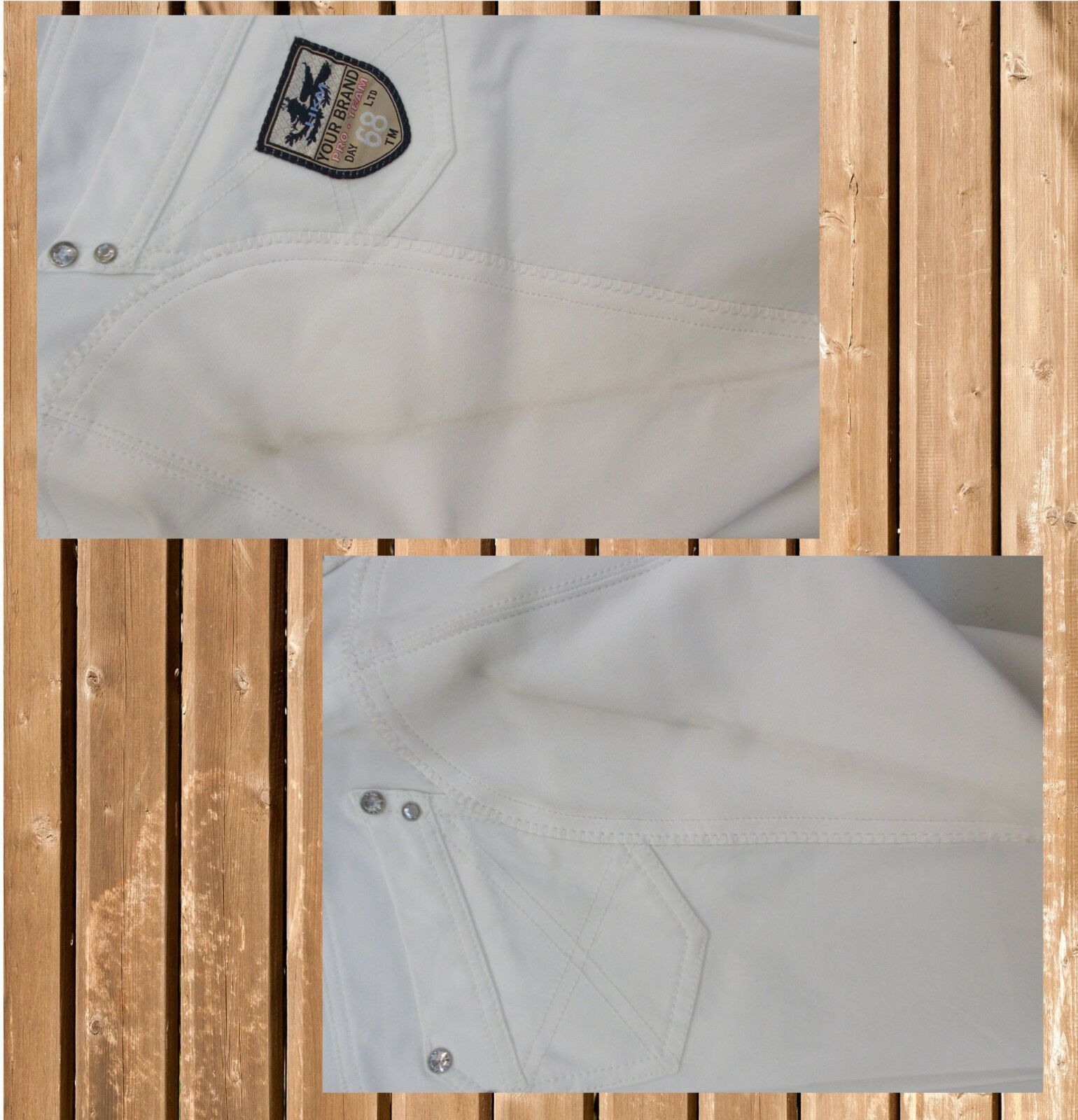 HKM Turnierreithose, Stiefelreithose Miss Blink, Hochbund, weiß, Gr. 38 - Fehler