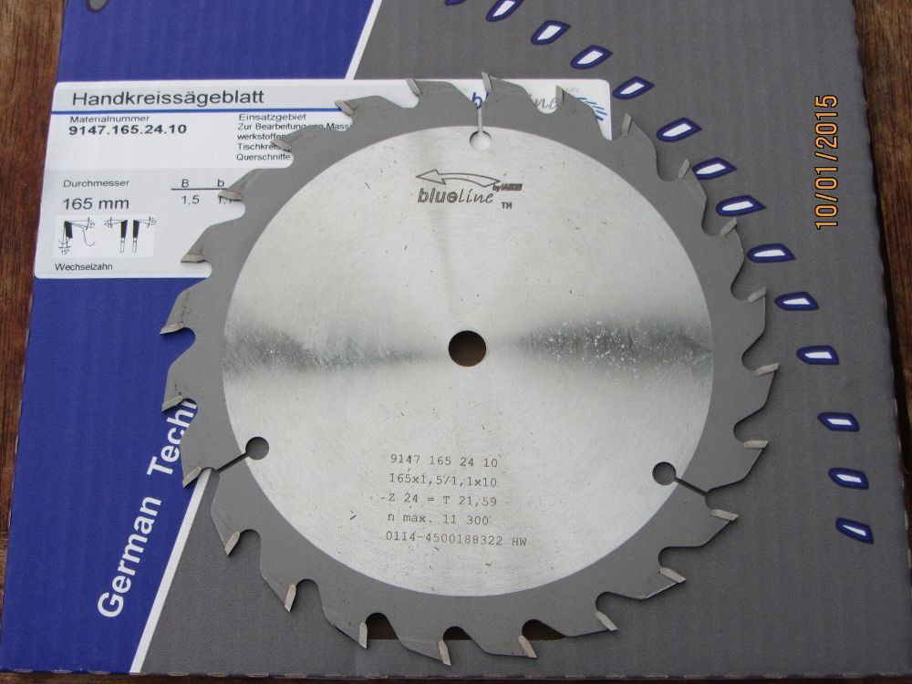 HM-Handkreissägeblatt/ Sägeblatt 165 x 1,0/1,5 x 10 Z 24 u. a. für Akkusägen