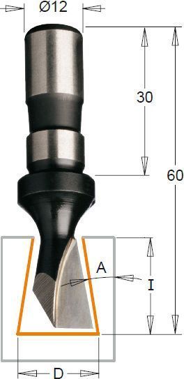 HW HM Zinkenfräser für Handoberfräsen aus dem Hause CMT Maße: Durchmesser 14 mm Gesamtlänge 60mm Schnittlänge 18 mm Schaft 12 mm Z=1 A Winkel 9 Grad Anwendung: Handoberfräsen zum Einfräsen von Schwalbenschwanzverbindungen extrem widerstandsfähiger Stahl 1 HW Präzionsschneide(z1) Ausführung: Schneids