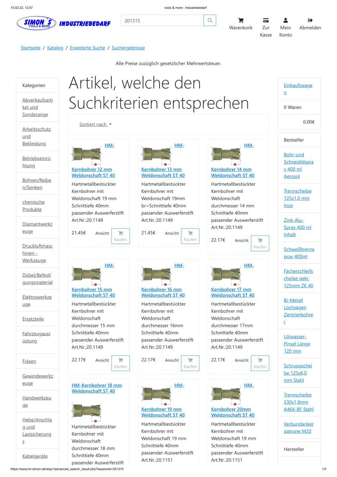 HM-Kernbohrer- Weldonschaft- verschiedene Durchmesser - Schnitttiefe 40mm