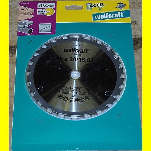 Wolfcraft HM Kreissägeblatt 165 x 20 x 15,87 mm 24 Zähne - Wolfcraft 6344000 für AKKU Sägen