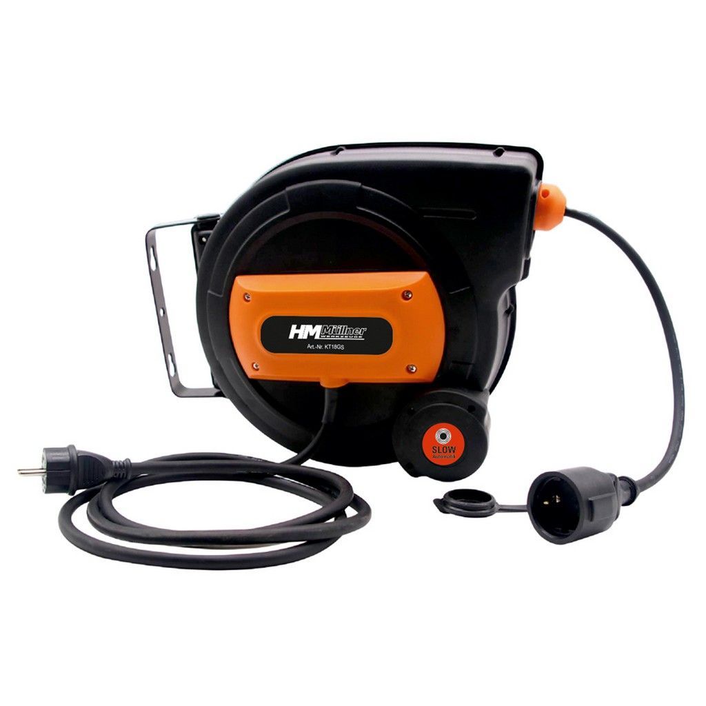HM Müllner Kabeltrommel Verlängerungskabel 18m IP20 mit Slow Automatik KT18GS