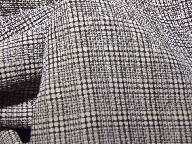 0,5 m Hahnentritt, 1,45 m breit, Wollstoff, Mantel, schwarz, ecru