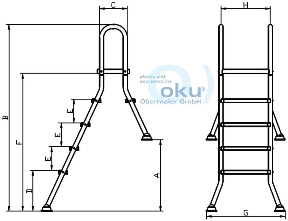 Hochbeckenleiter V2A Edelstahl 4/1 stufig Schwimmbad Pool