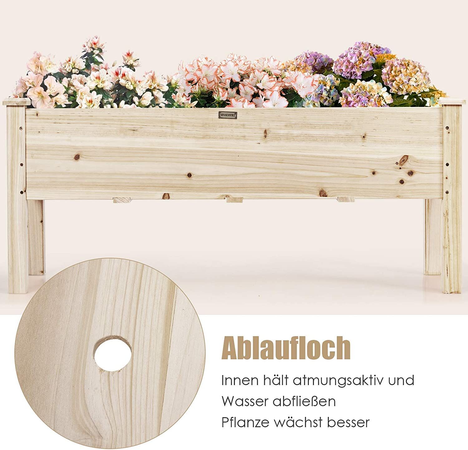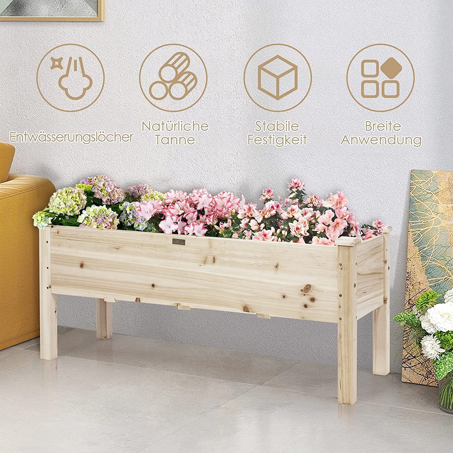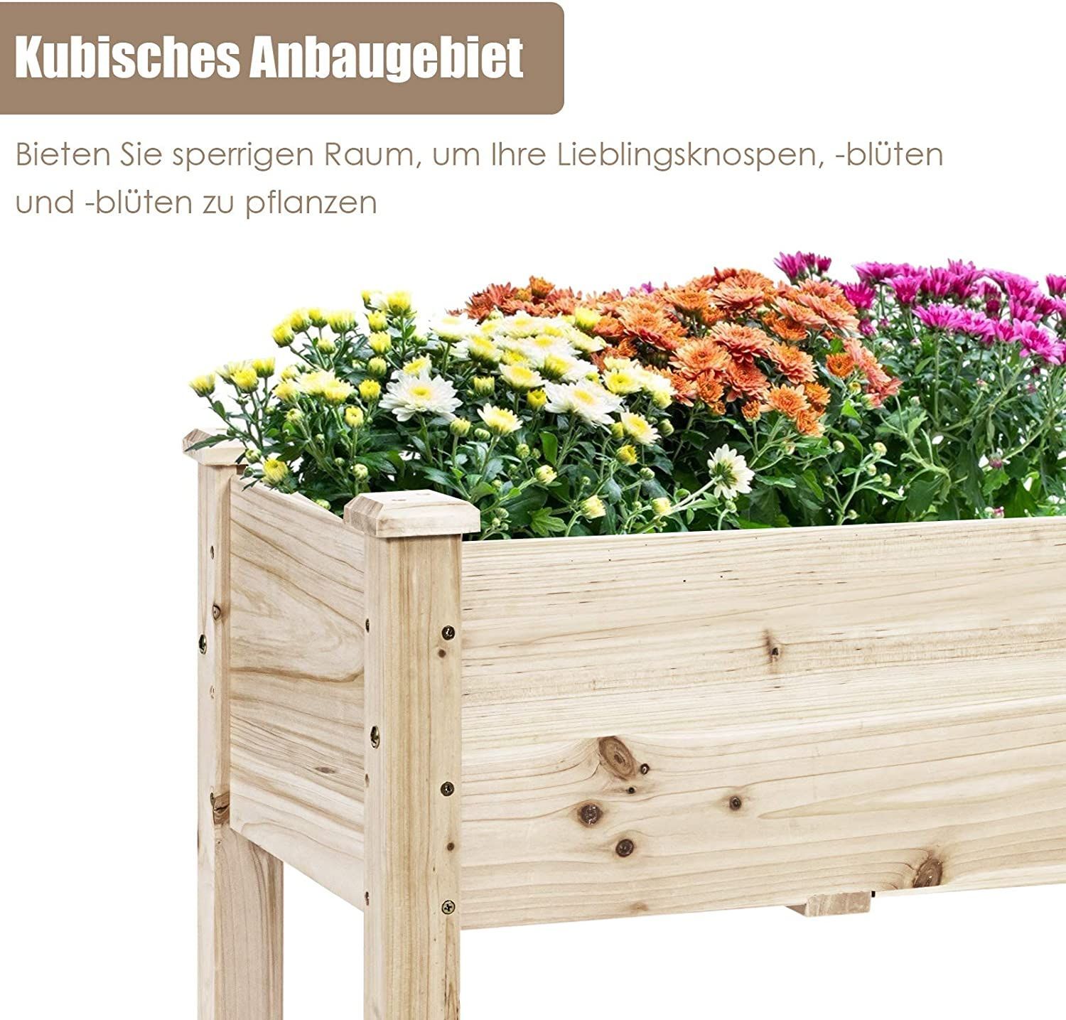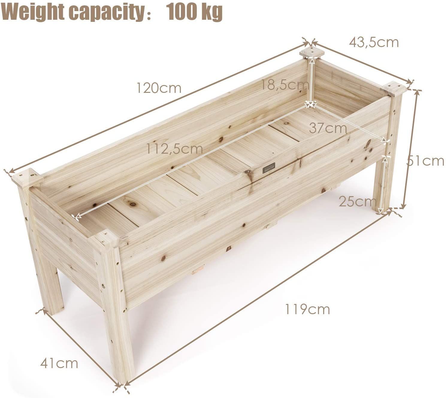 Hochbeet Holz, Pflanzbeet für Kinder, 120x43,5x51cm, Pflanztrog belastbar bis 100 kg