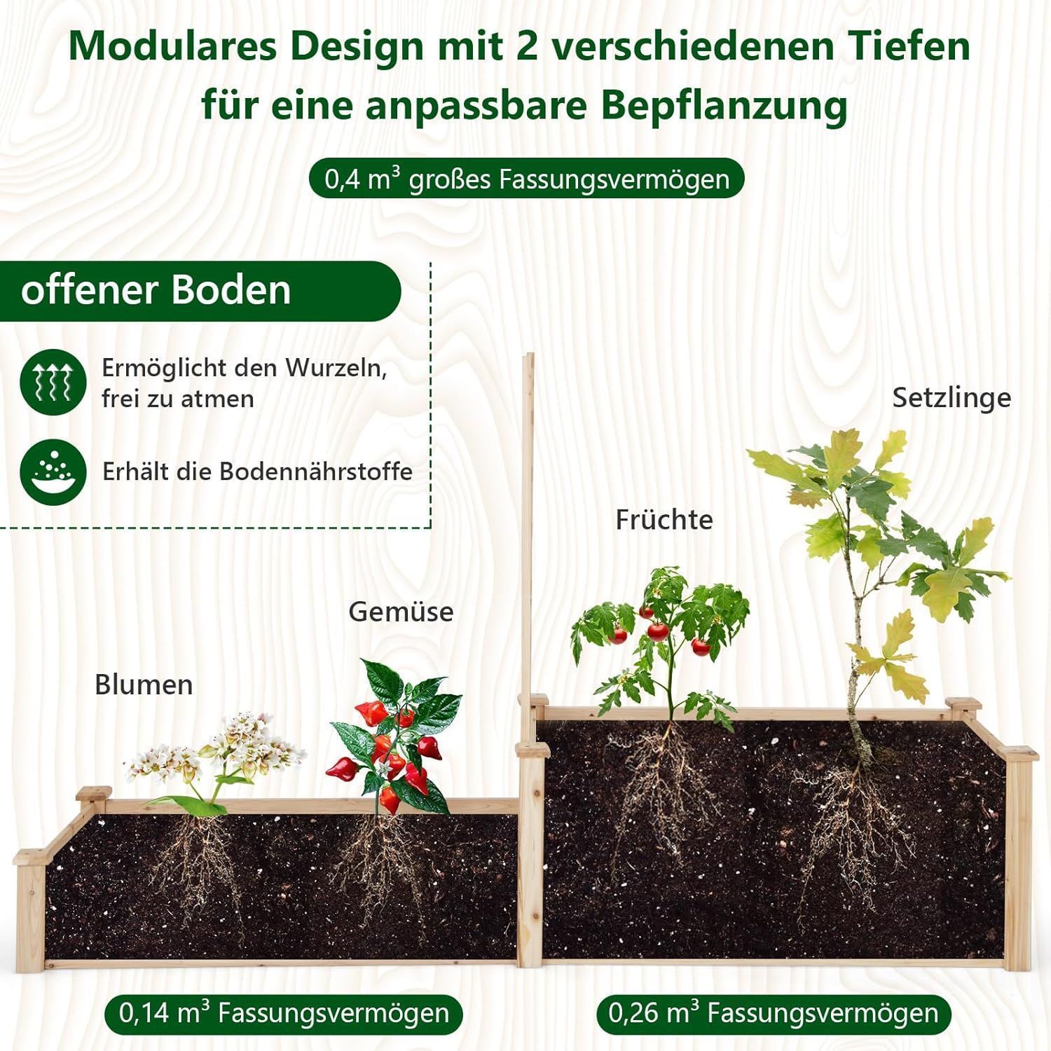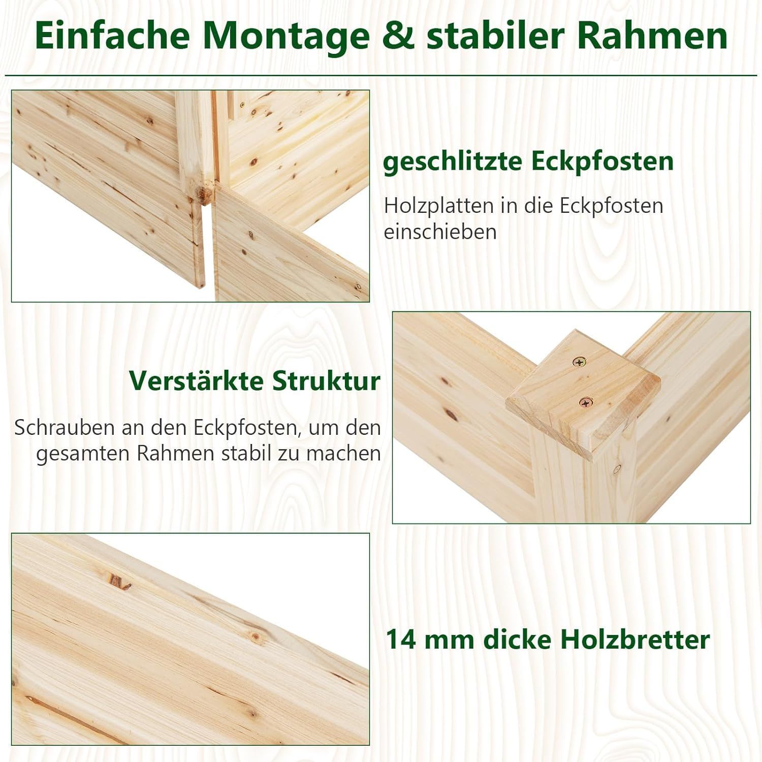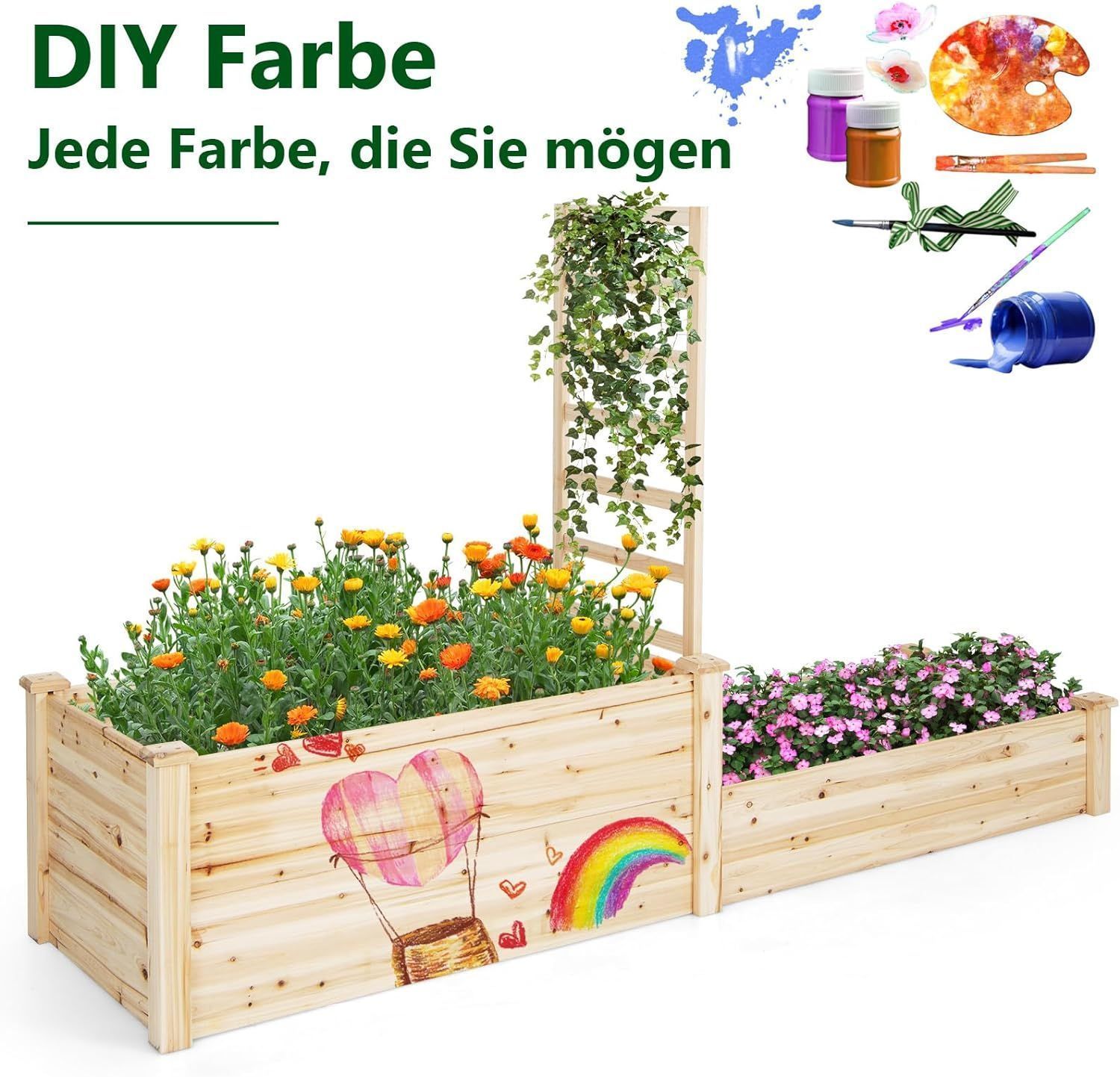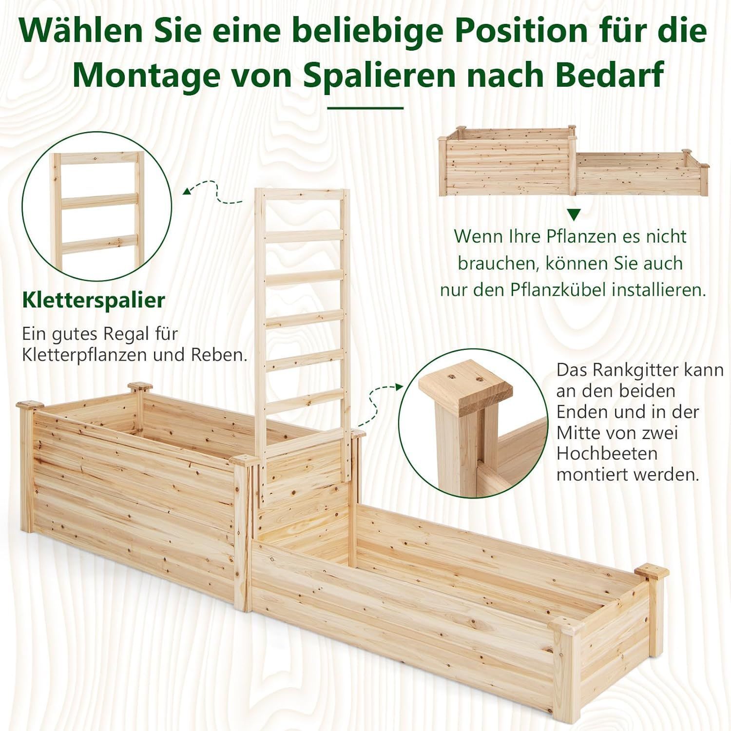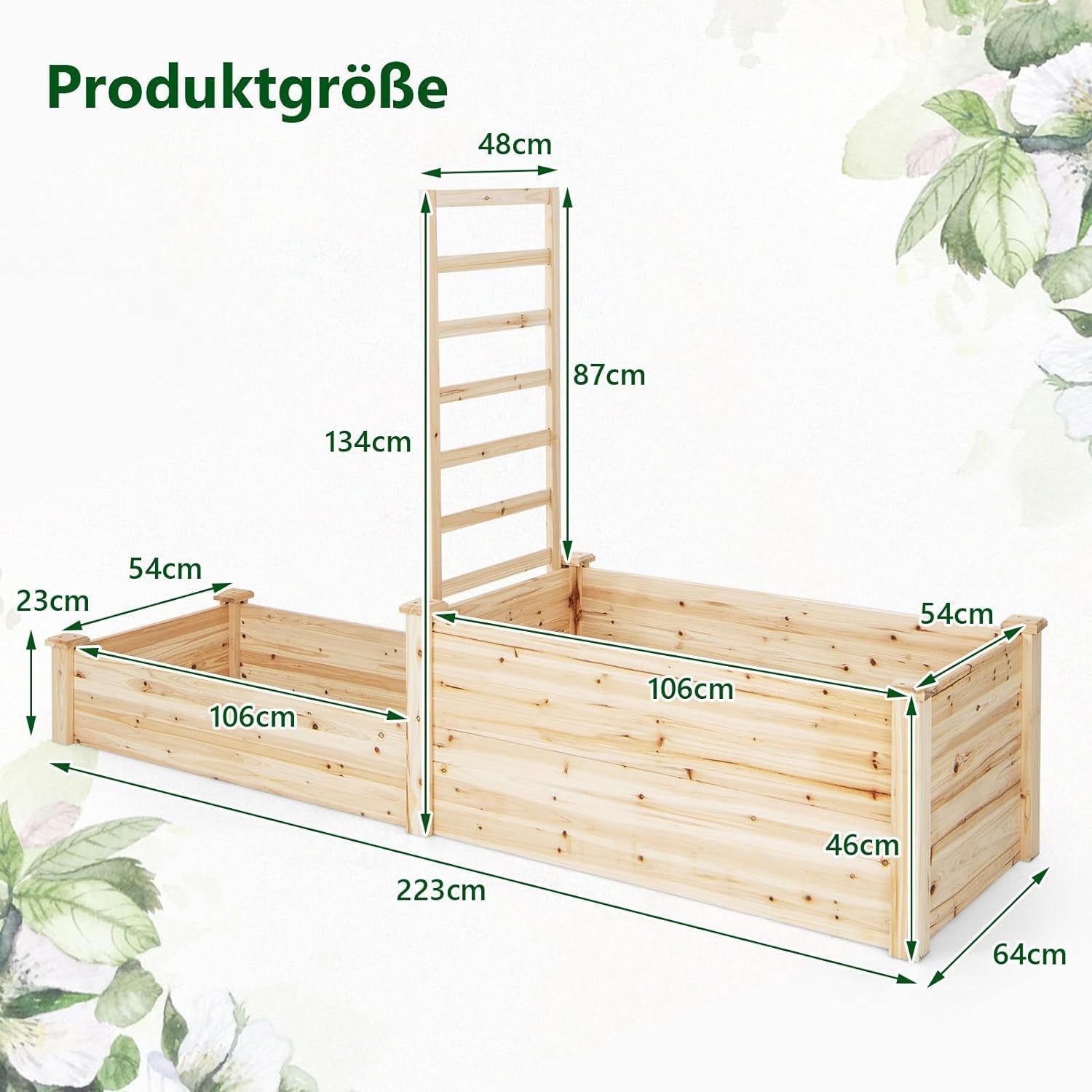 Hochbeet mit Rankgitter, Blumenkasten mit Spalier, Pflanzkasten 223 x 64 x 134 cm