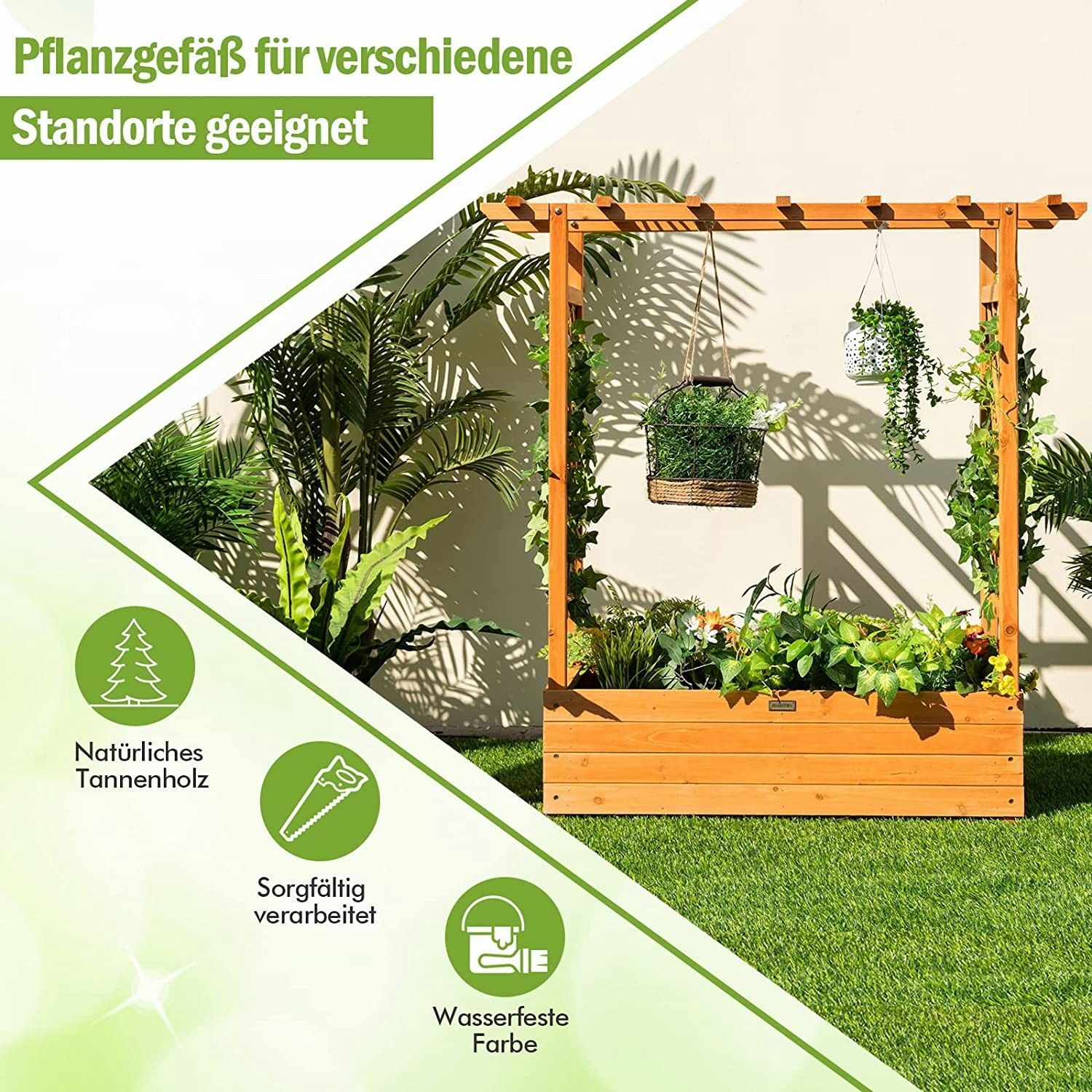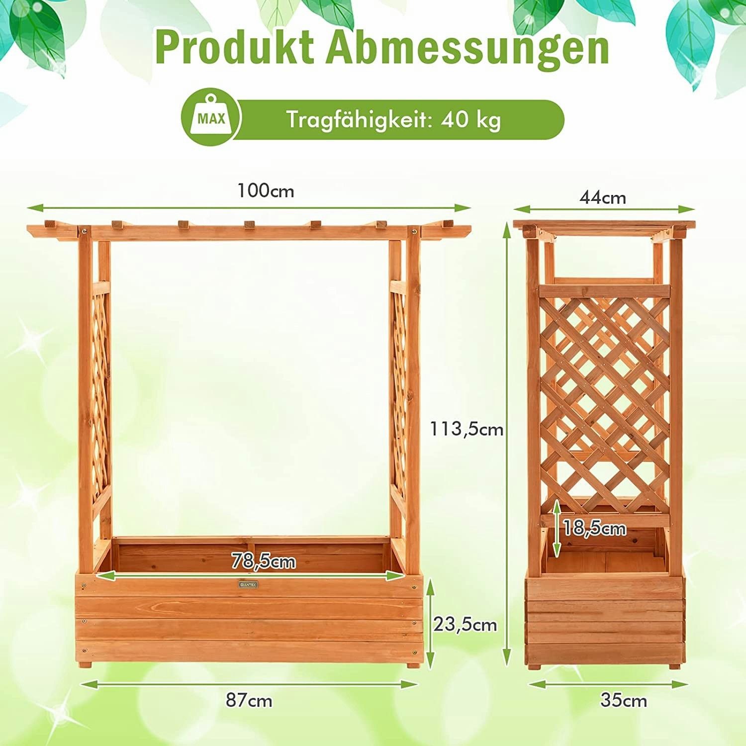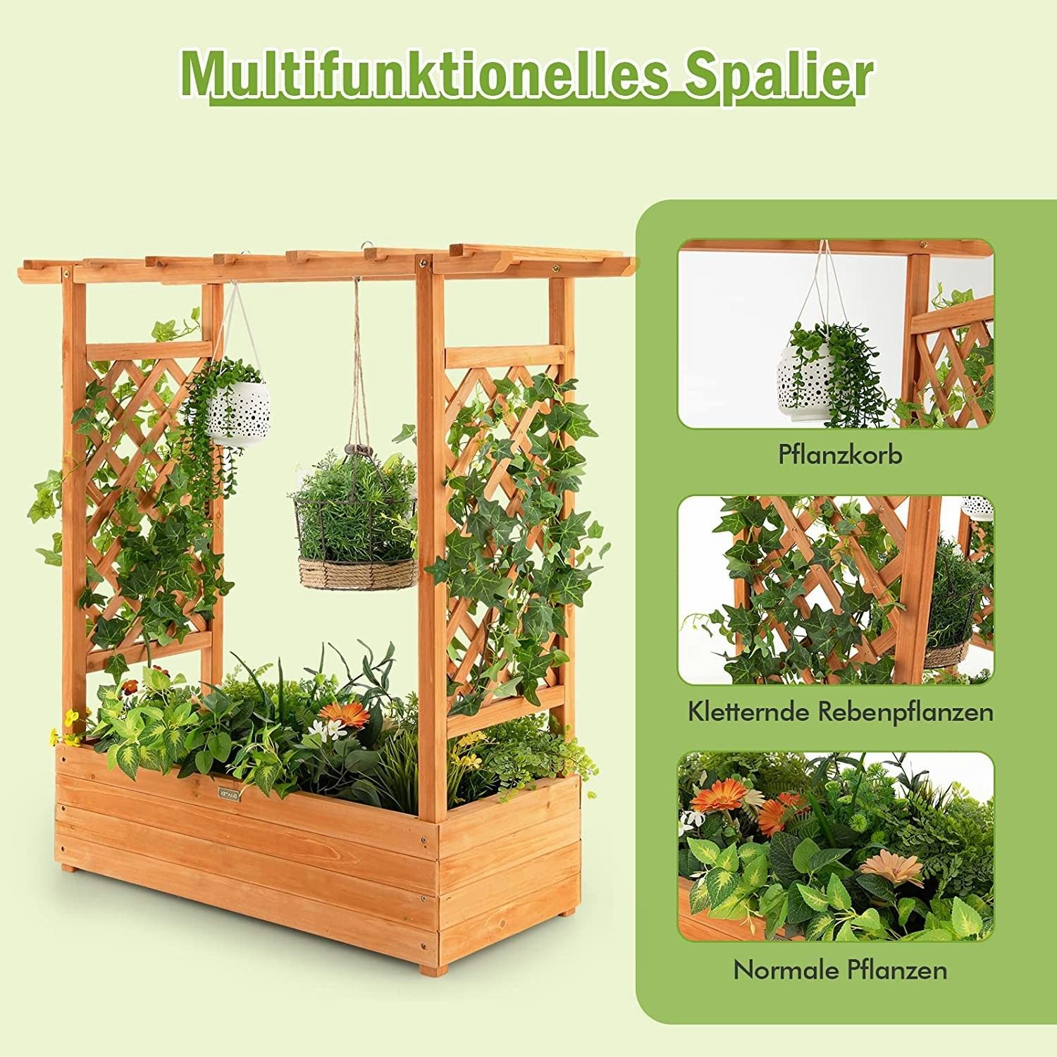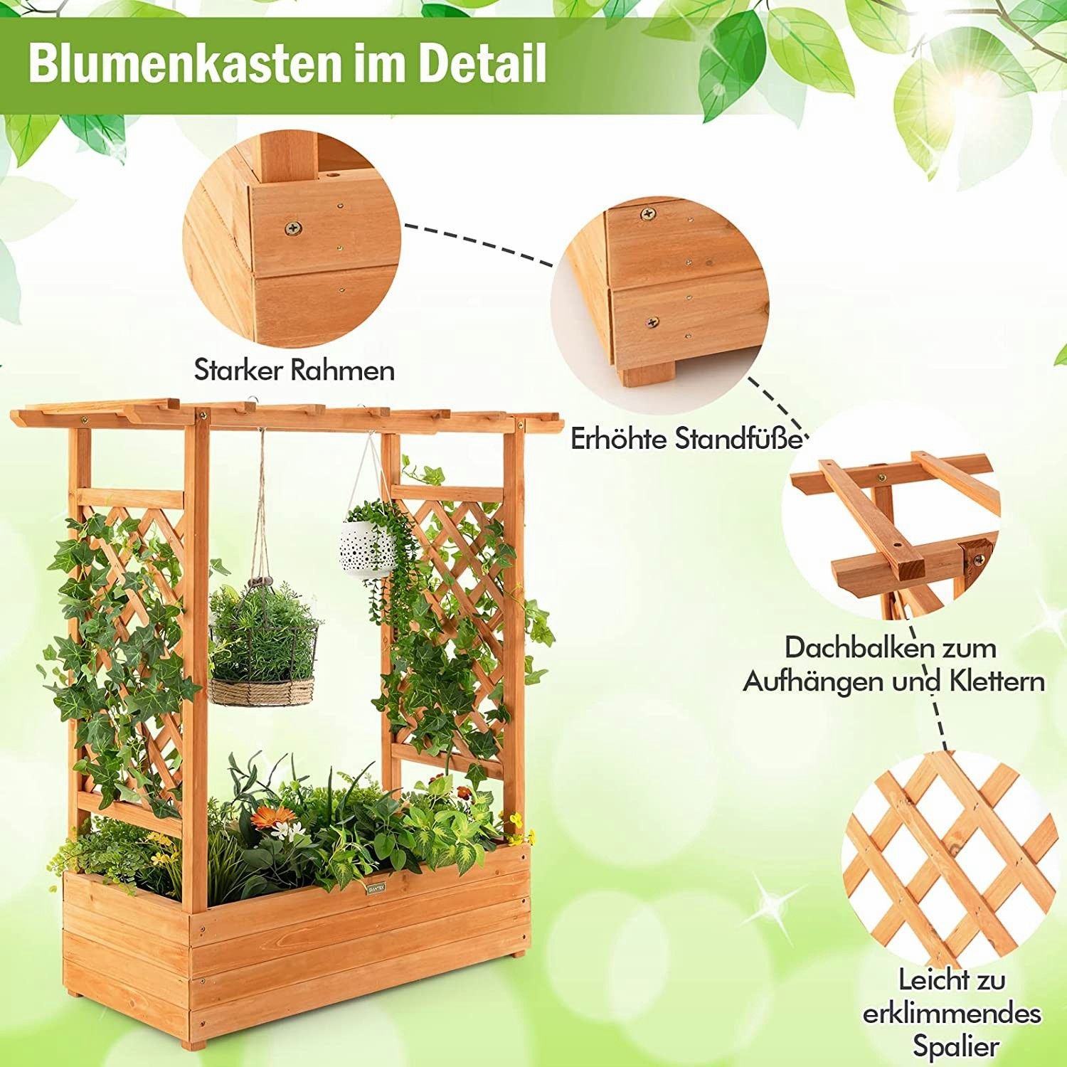 Hochbeet mit Rankgitter & hängendem Dach, Pflanzkasten mit Rankhilfe, Blumenkasten