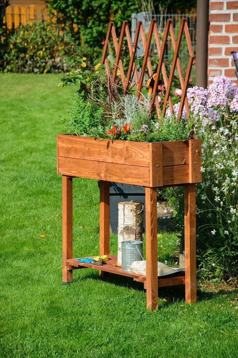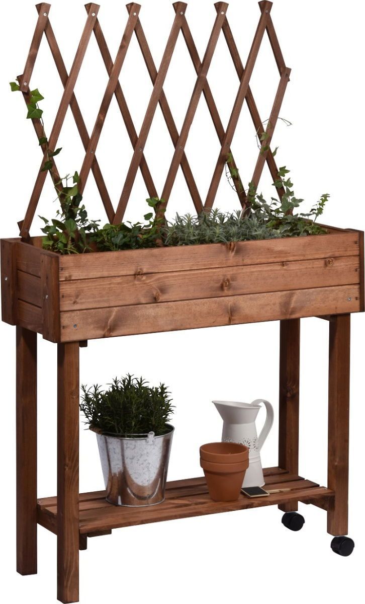 Dobar Hochbeet mit Rollen, Rankgitter und Ablage, Pflanzkasten