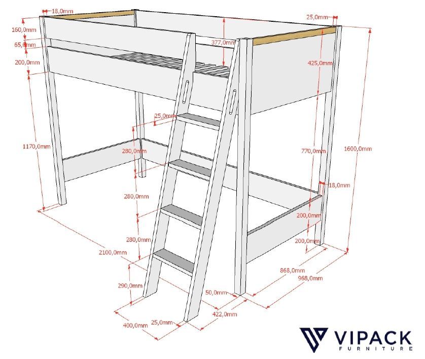 VIPACK Hochbett 90 x 200- Kinderbett Spielbett Jugendbett Hausbett Kinderzimmer