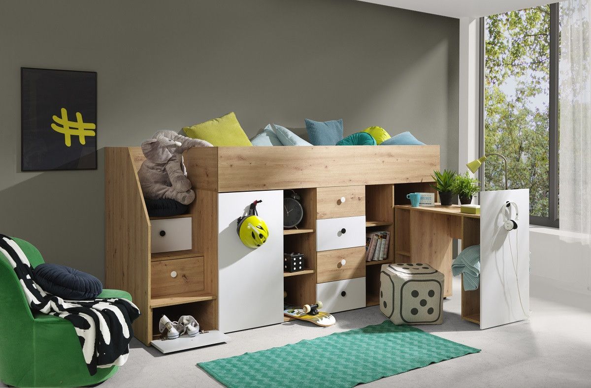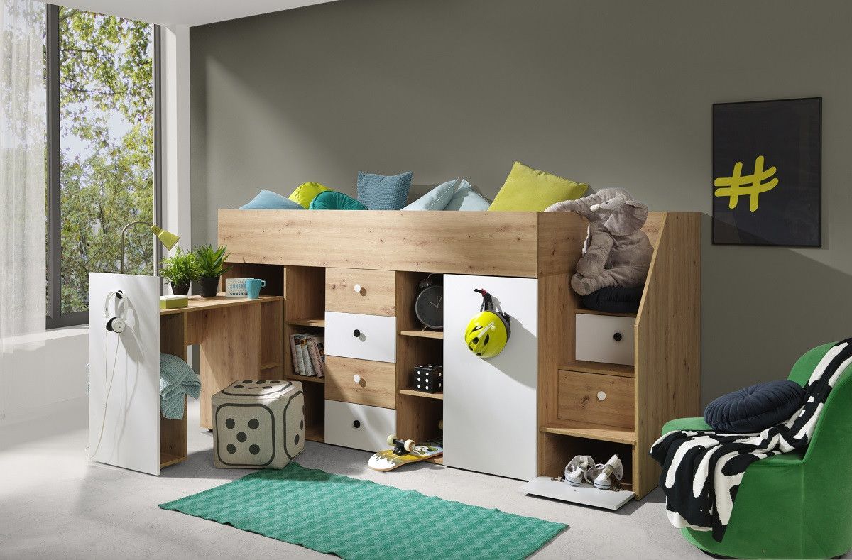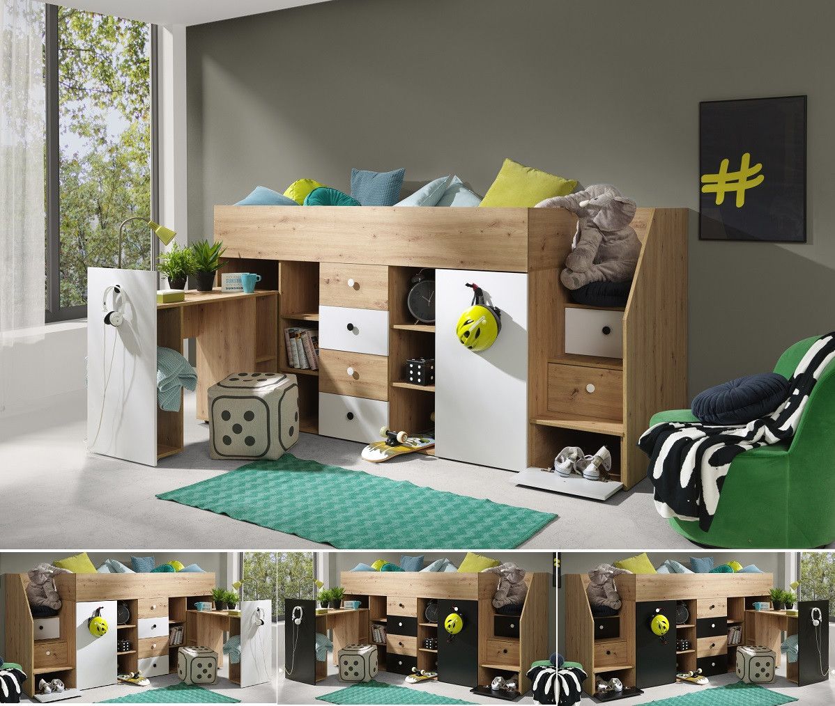 Hochbett Etagenbett mit Schreibtisch & Schrank SAM 3 für 2-3 Kinder hochglanz auswahl