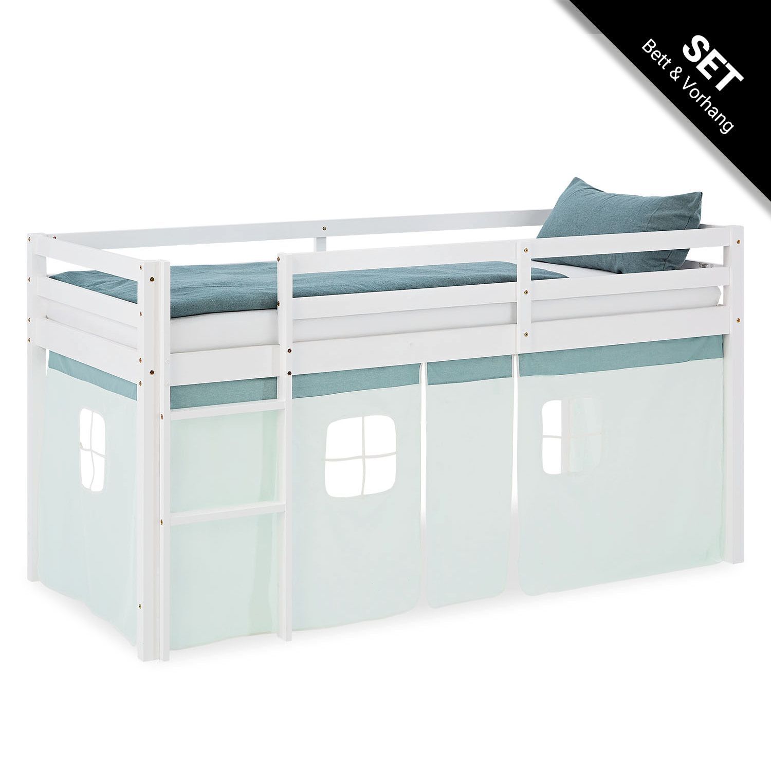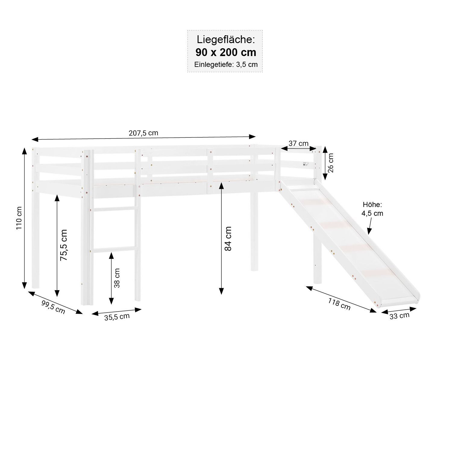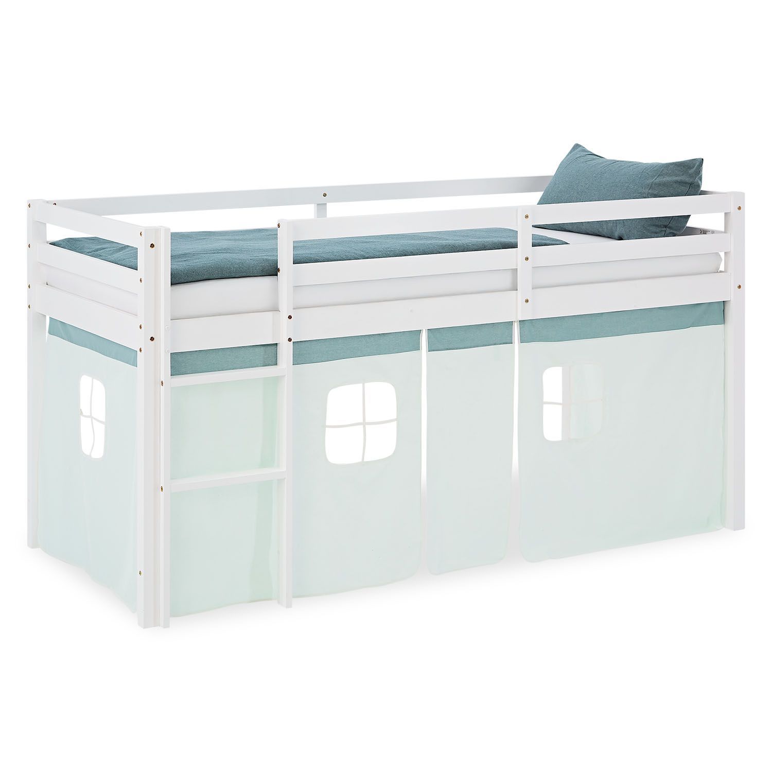 Hochbett Kinder 90x200 cm Kinderbett Kinderhochbett Stockbett Tunnel Vorhang Turm