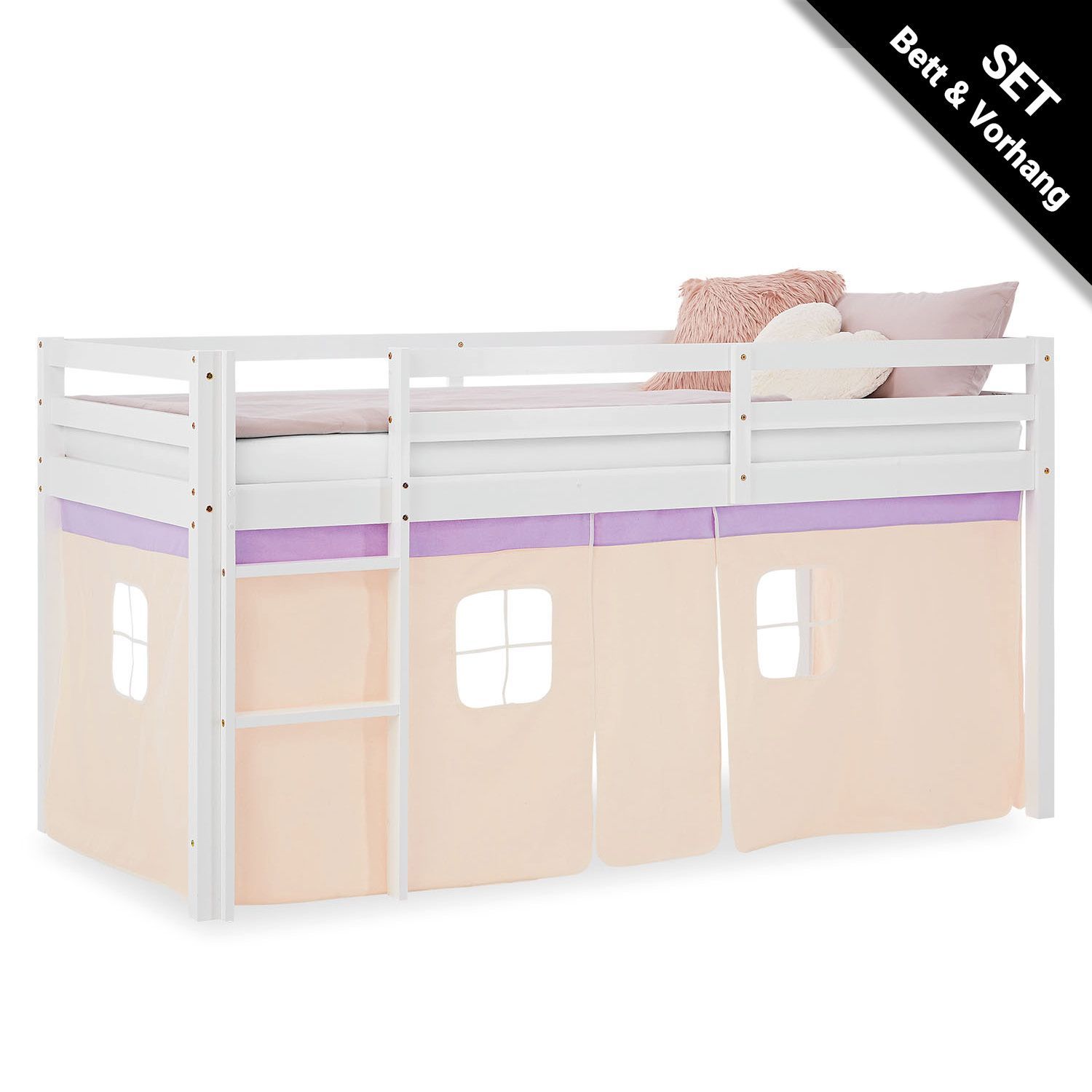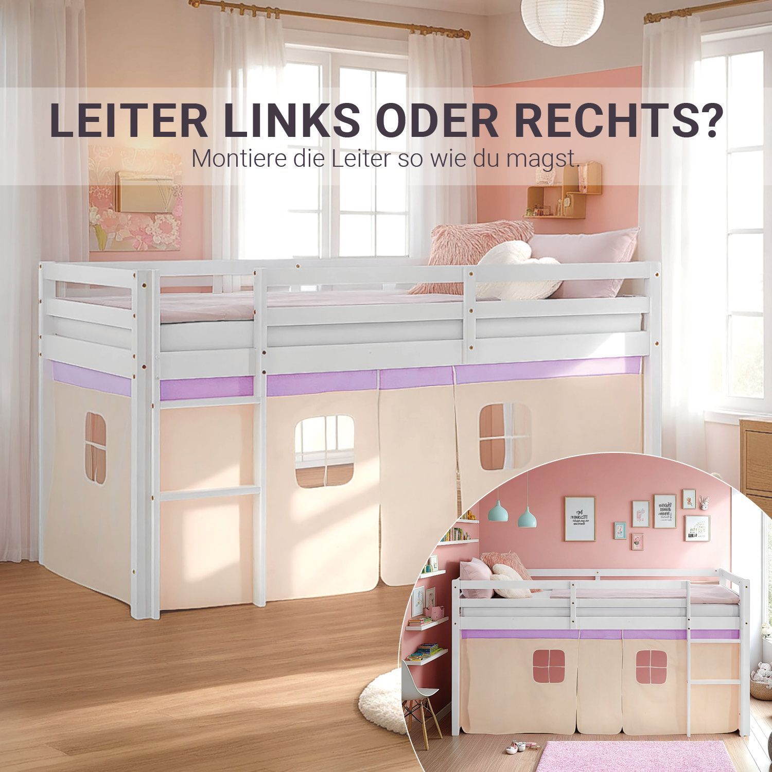 Hochbett Kinder 90x200 cm Kinderbett Kinderhochbett Stockbett Vorhang Lila Peach