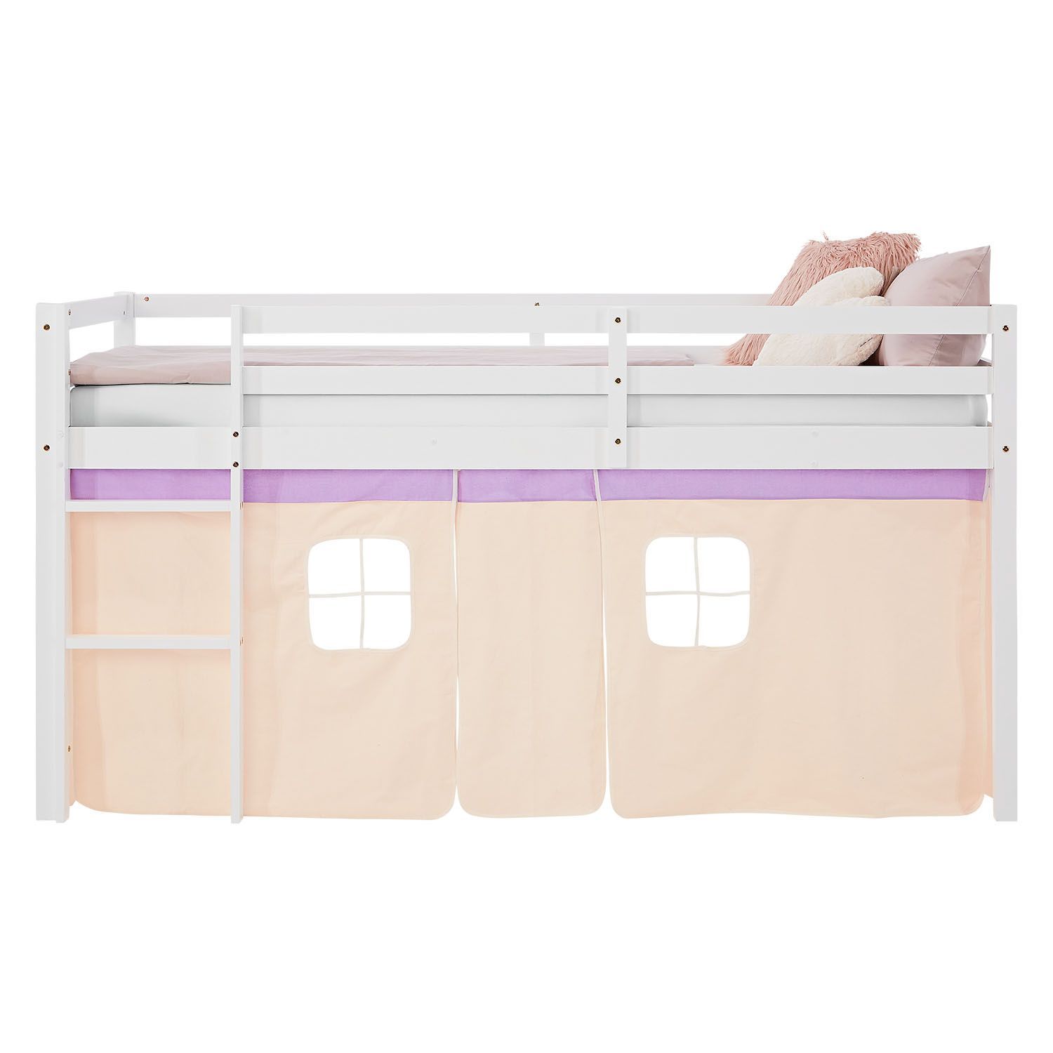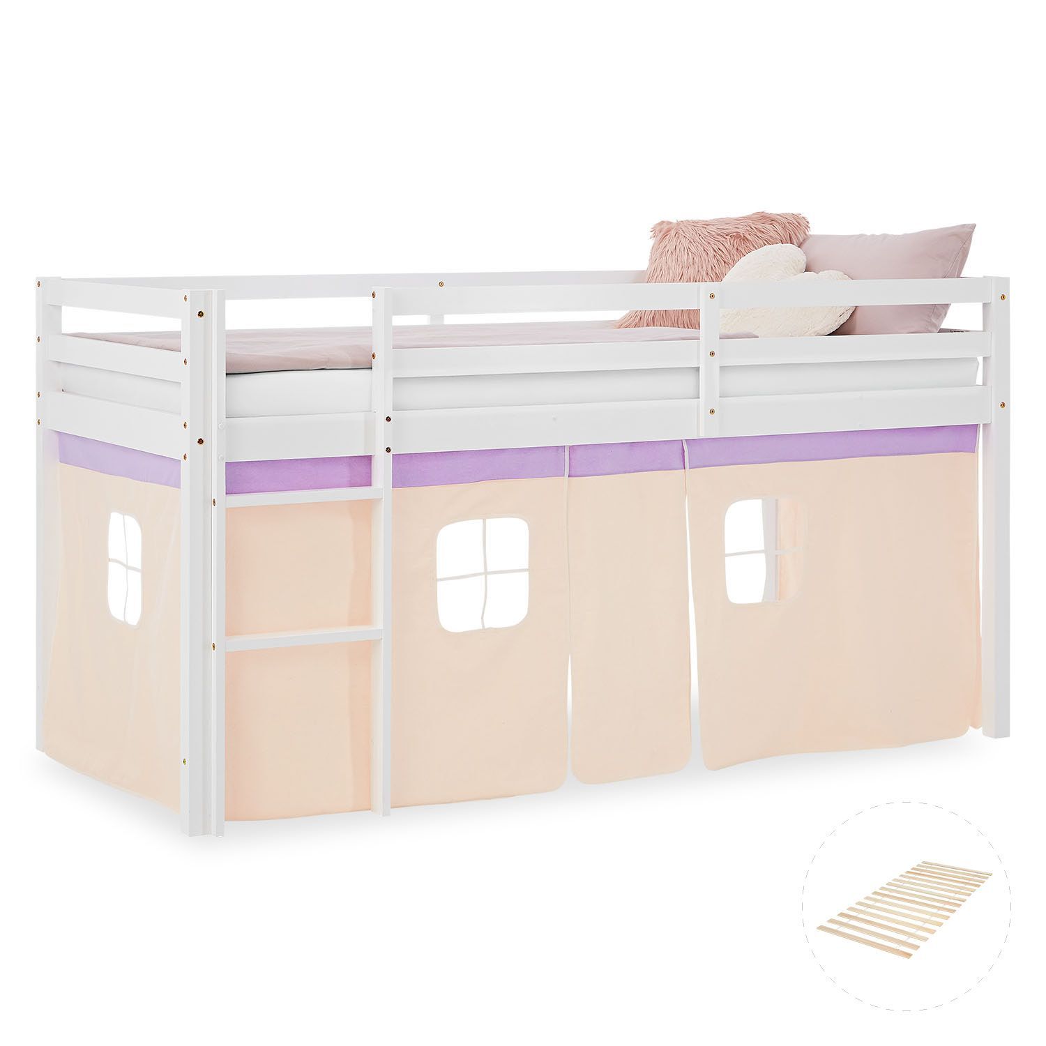 Hochbett Kinder 90x200 cm mit Lattenrost Kinderbett Kinderhochbett Stockbett Vorha
