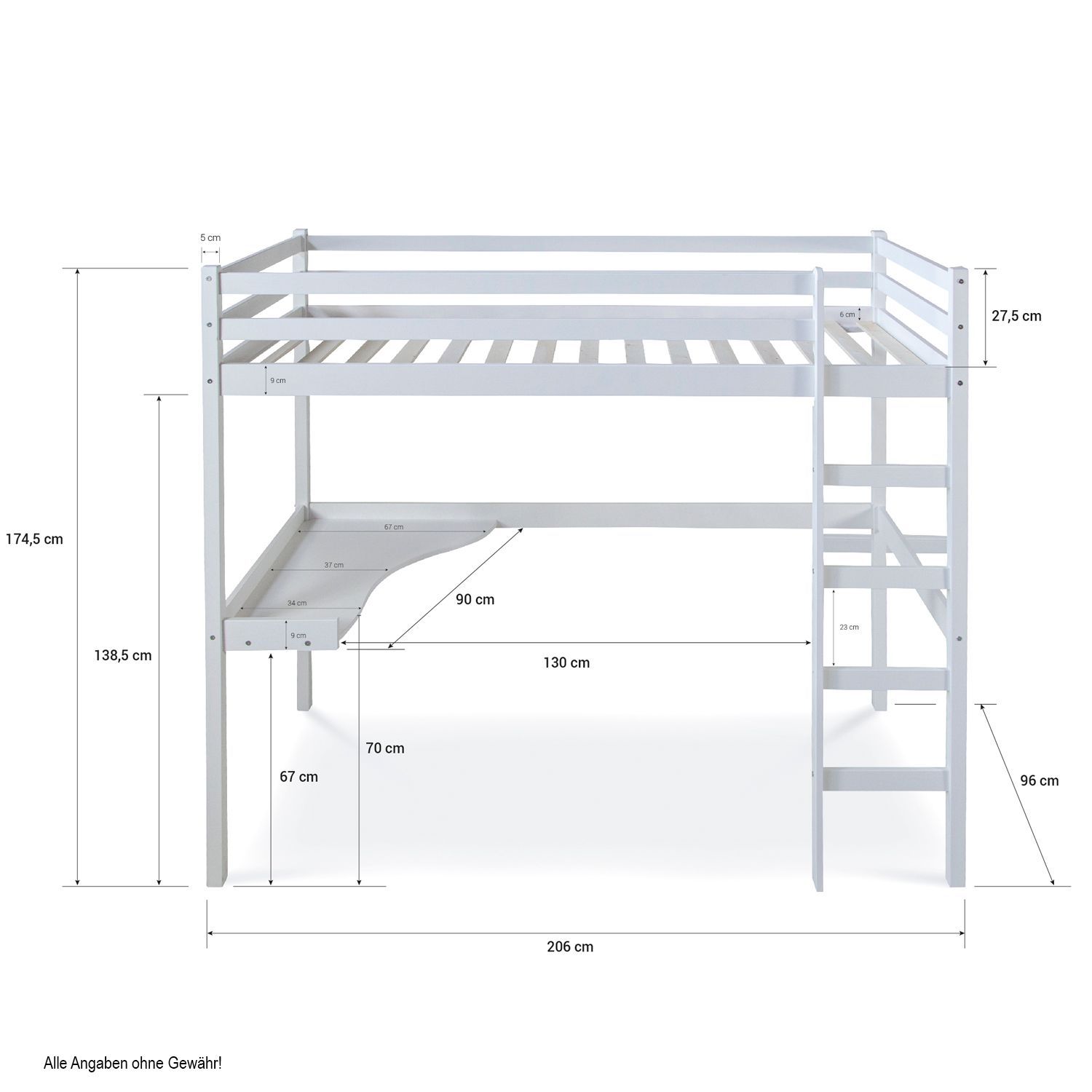 Hochbett Kinderbett 90x200 weiß Schreibtisch Spielbett