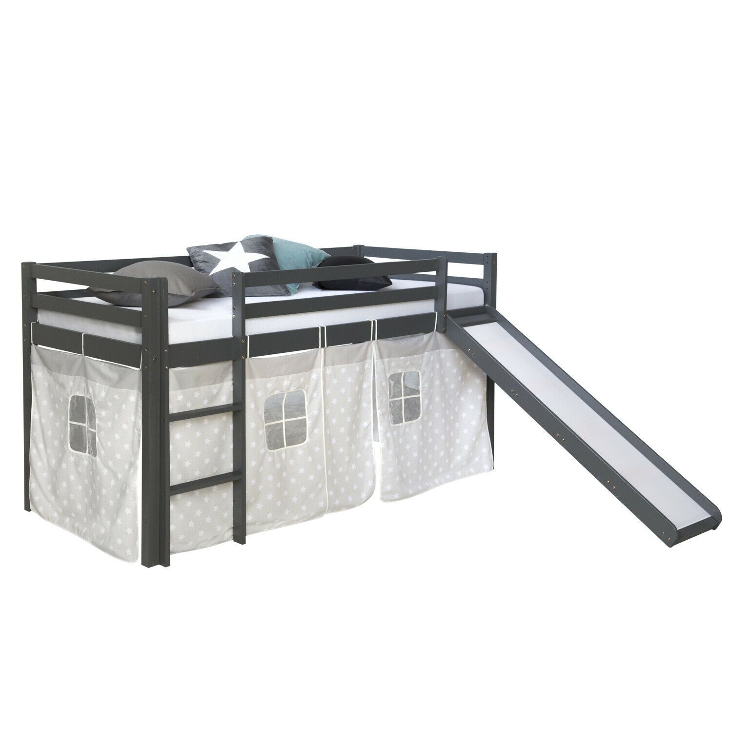 Hochbett Kinderbett Rutsche Turm Vorhang Sterne 90x200 Jugendbett
