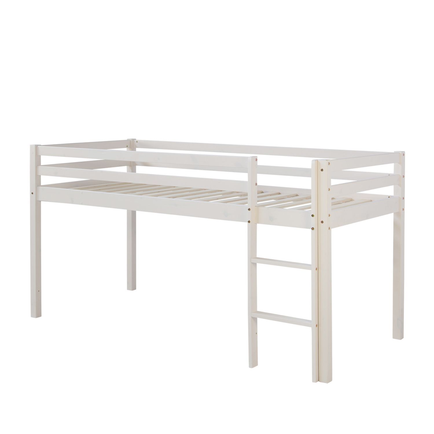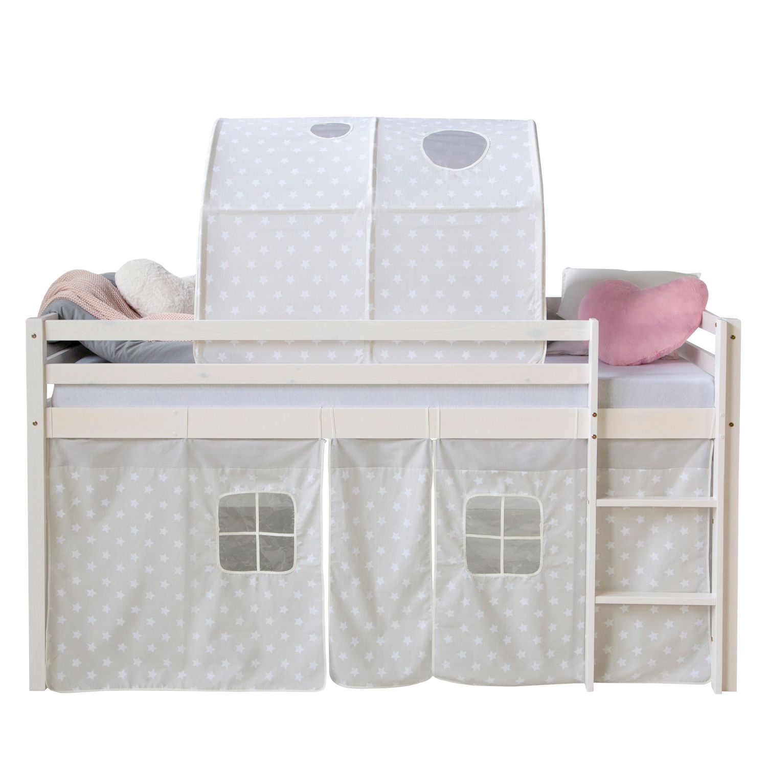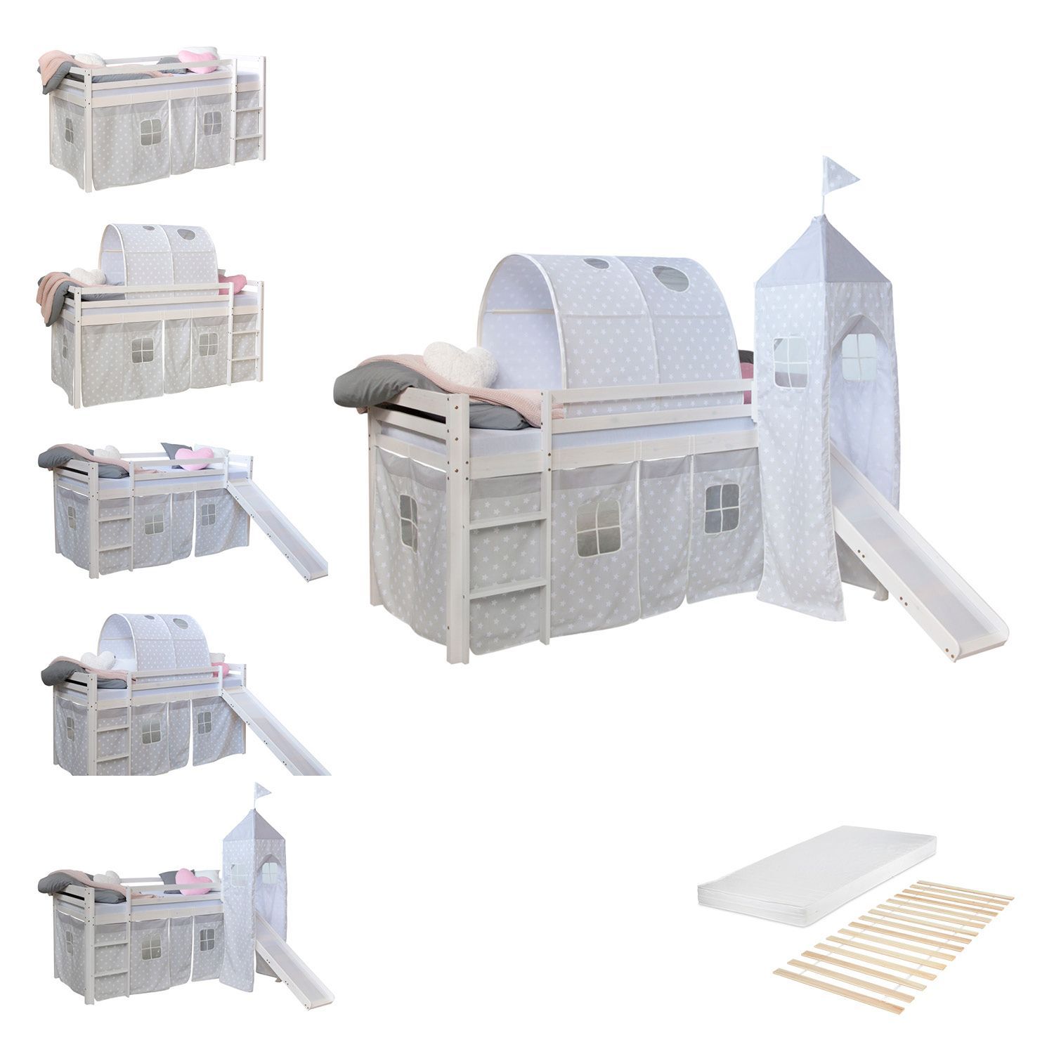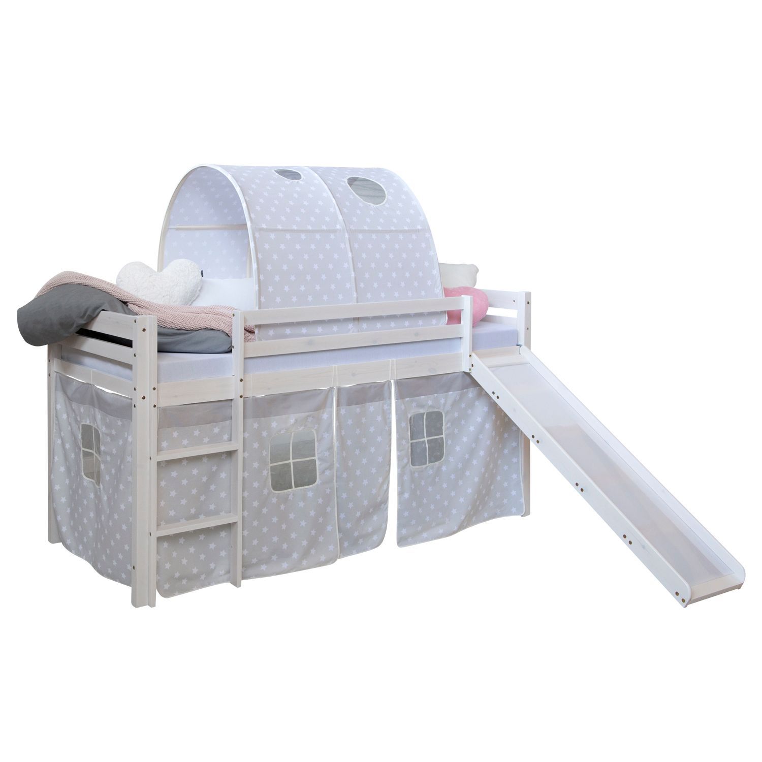 Hochbett mit Lattenrost 90x200 cm Kinderbett Leiter Holz Kiefer Vorhang Sterne
