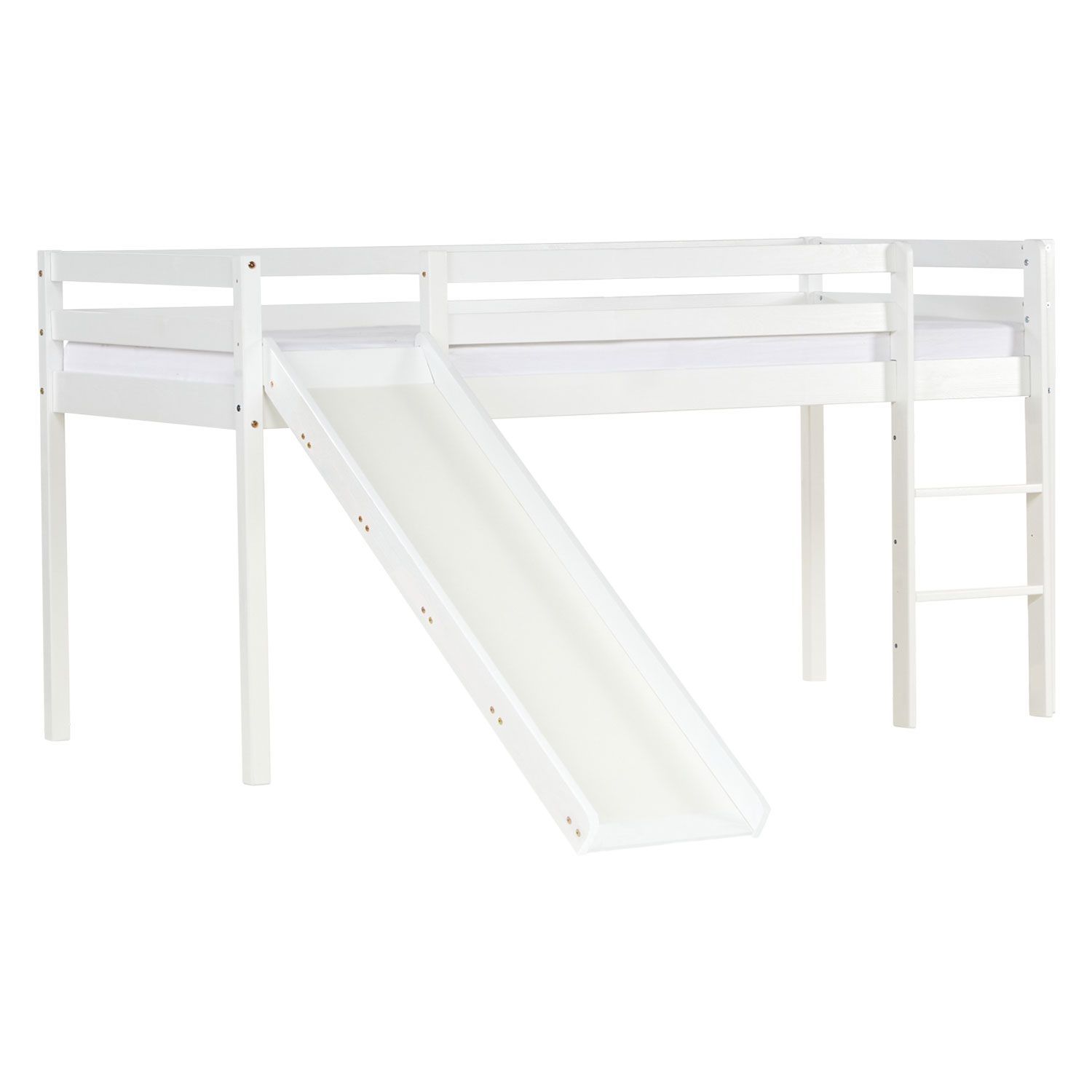 Hochbett mit Lattenrost Kinderbett Leiter Rutsche Kiefer 90x200 massiv Jugendbett