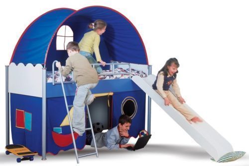 Hochbett Spielbett - FUNNY - 90 x 200 cm Kompletset in Blau