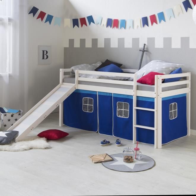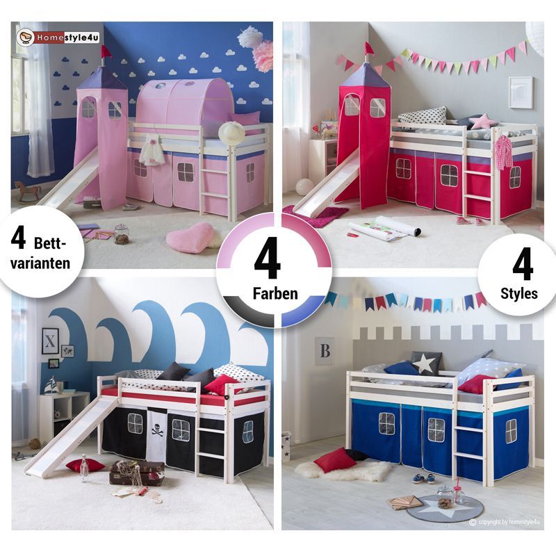 Hochbett Spielbett Kinderbett Leiter Rutsche Turm Vorhang Bett 90x200 Jugendbett