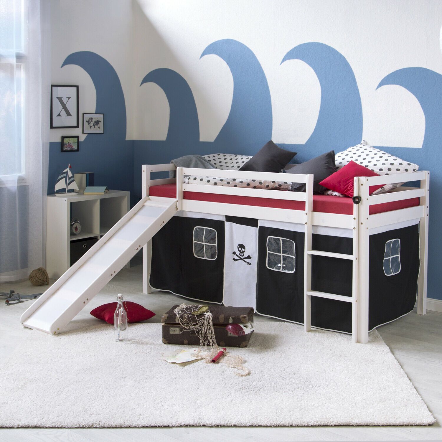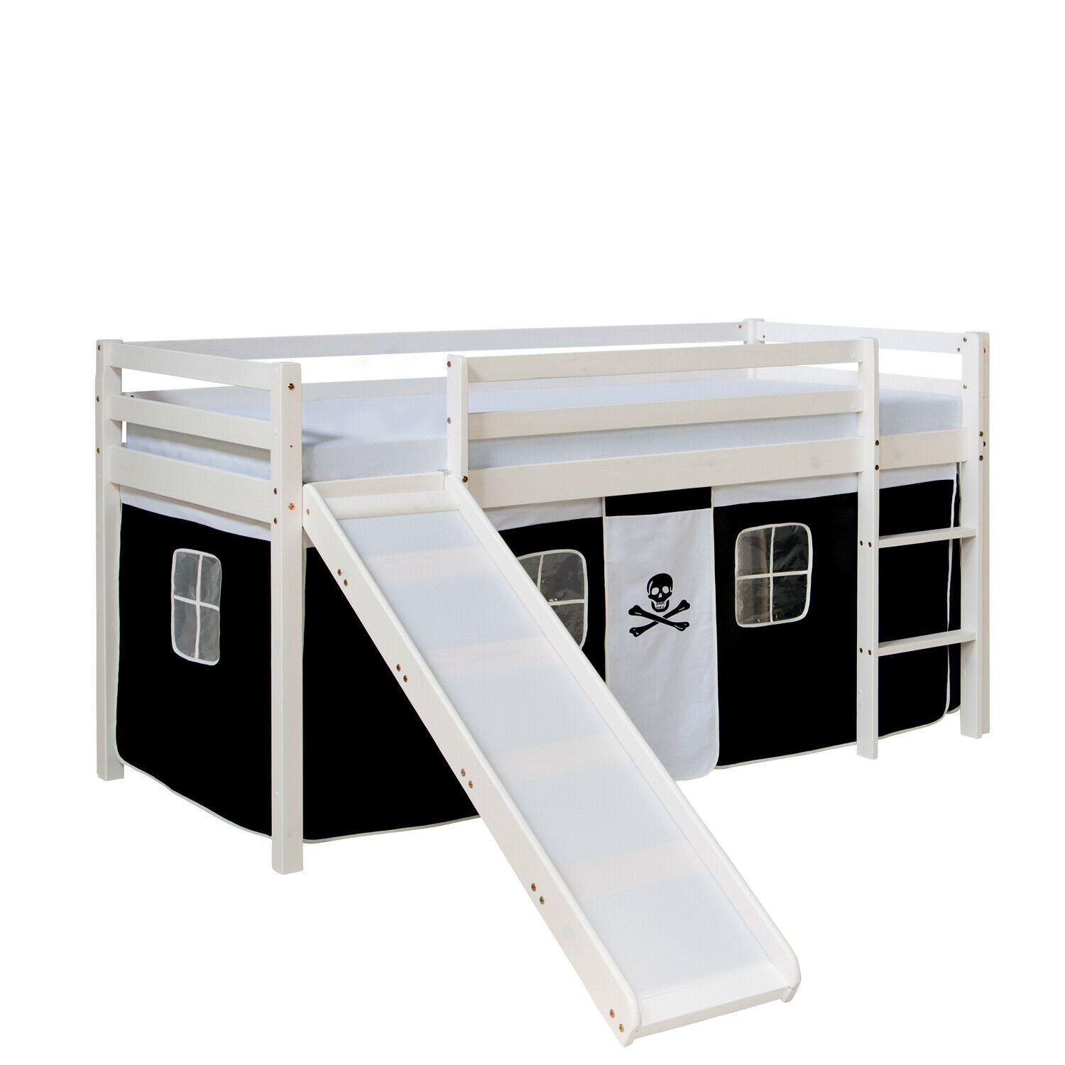 Hochbett Spielbett Kinderbett Rutsche Kiefer Vorhang schwarz 90x200 Jugendbett