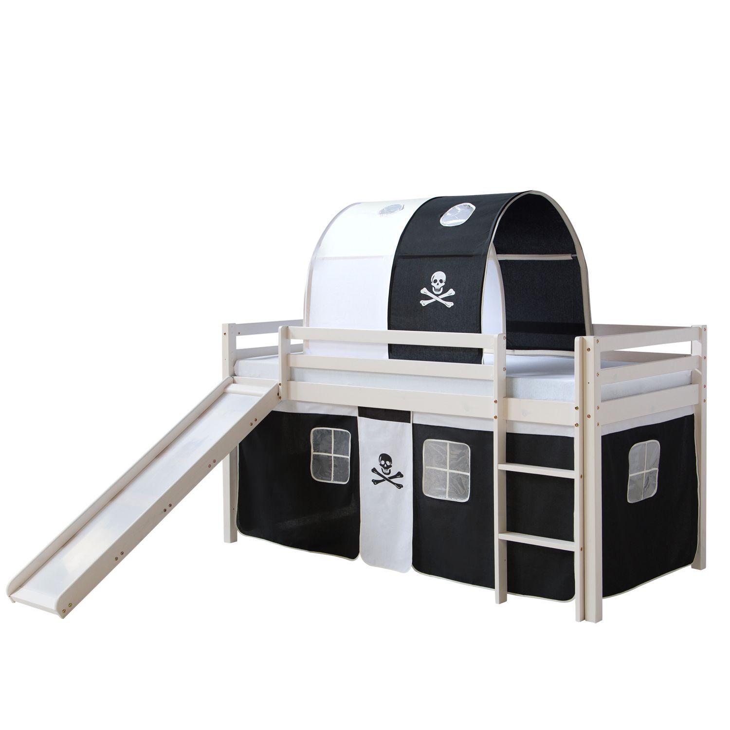 Hochbett Spielbett Kinderbett Rutsche Vorhang schwarz 90x200 Jugendbett Kiefer 1566