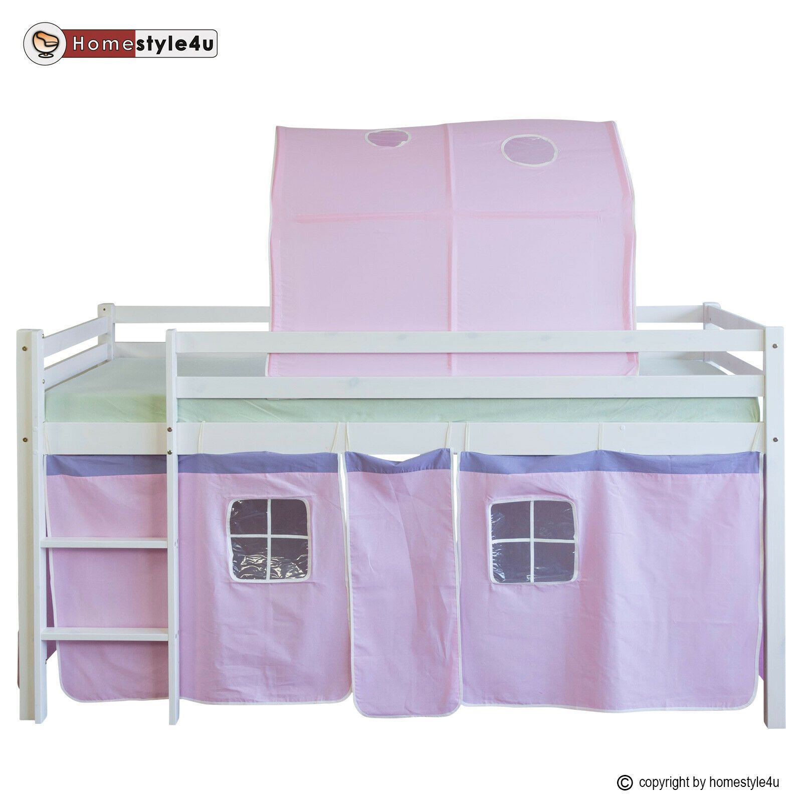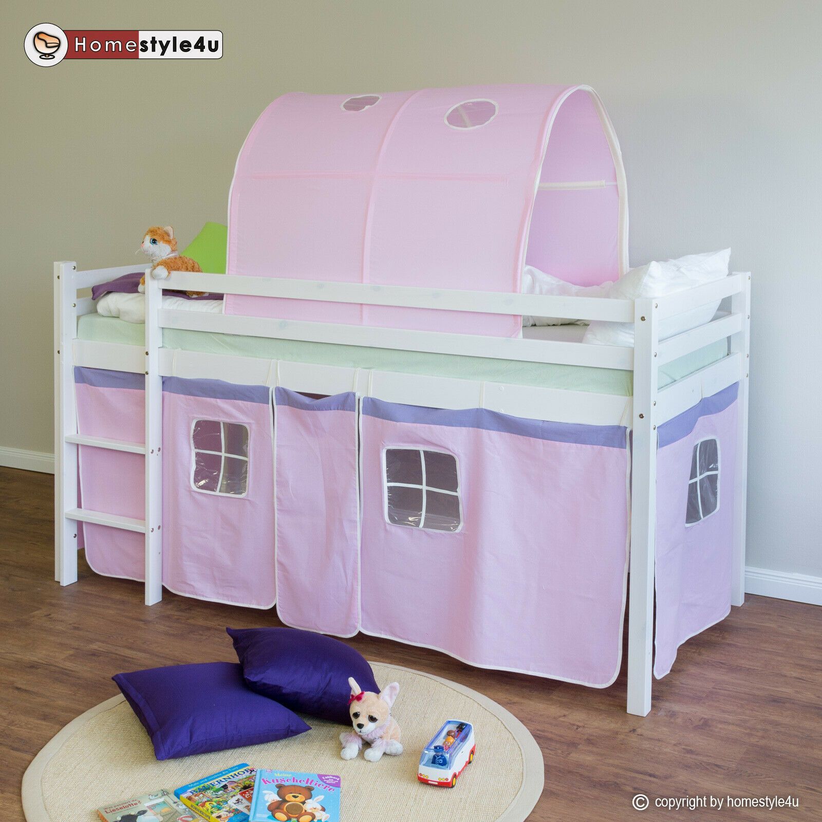 Hochbett Spielbett Kinderbett Tunnel Vorhang pink 90x200 Jugendbett Kiefer