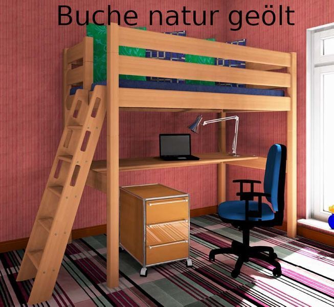 Hochbett Stockholm 2-L2, 120x200, Kiefer & Buche von Dahlhaus Kiefer Buche, verschiedene Farben & Höhen, Hochbett 120x200 - Einstieg Schmalseite Selbstverständlich können Sie dieses Bett auch in anderen Maßen bestellen. Andere Maße finden Sie hier! Andere Modelle für Hochbett 120x200 finden