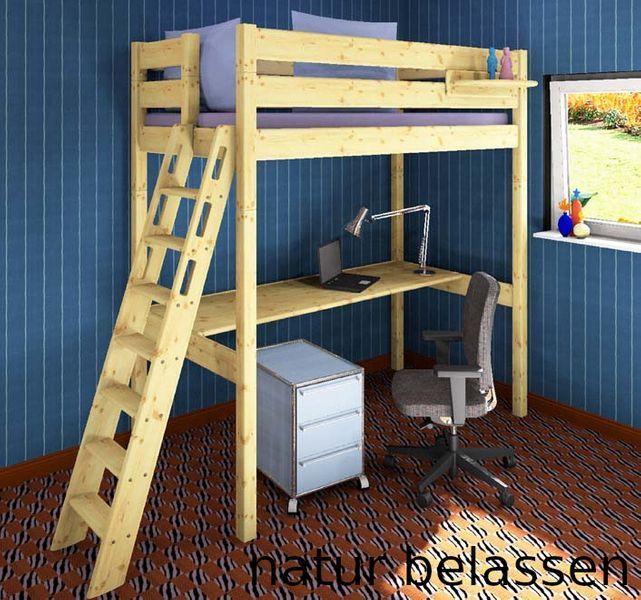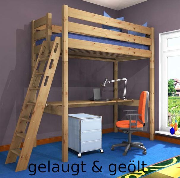 Hochbett Stockholm 2-L2, 120x200 - Kiefer & Buche