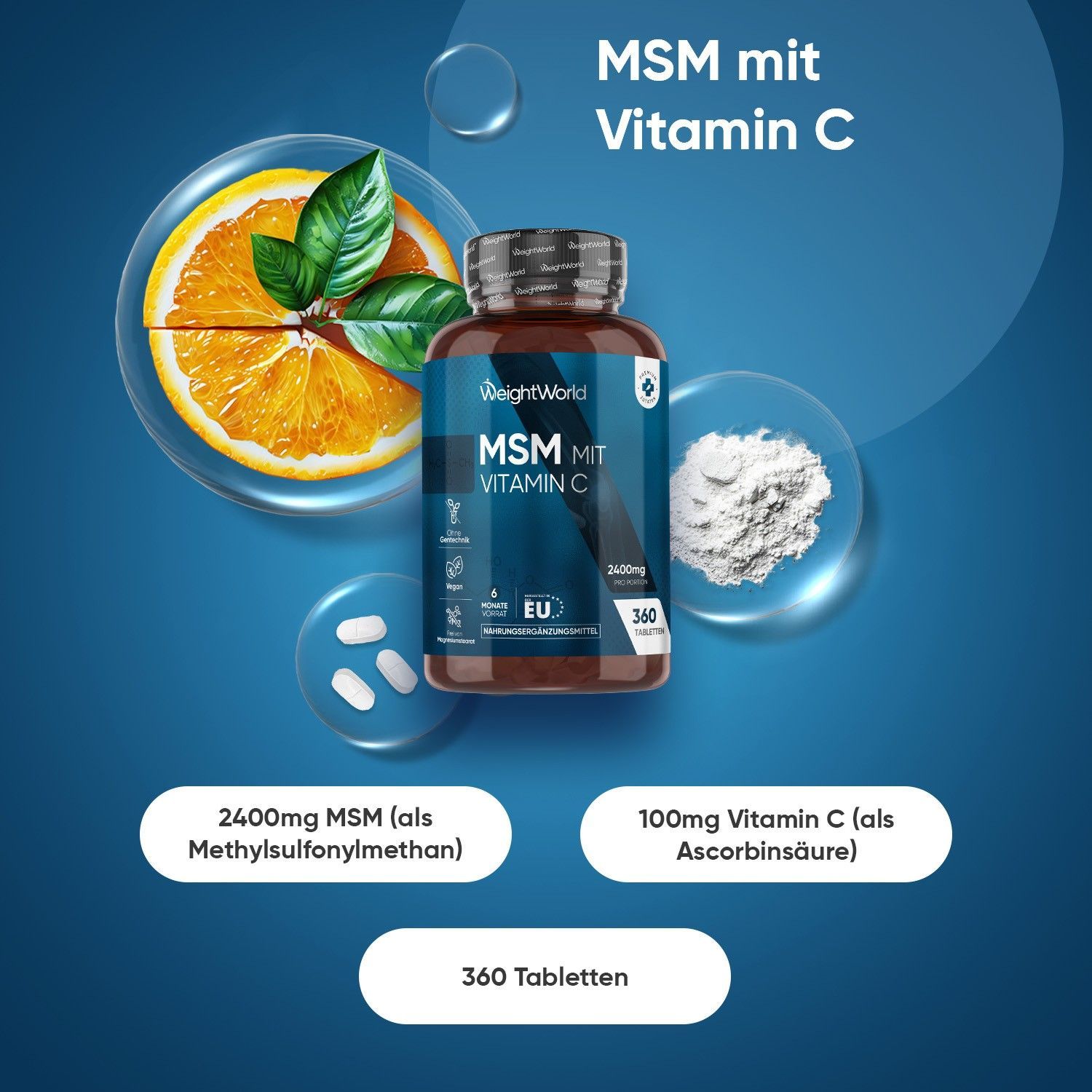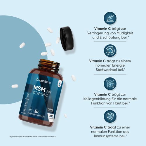 Hochdosiertes MSM - 3er-Pack, 1080 Tabletten - Mit 100mg Vitamin C täglich