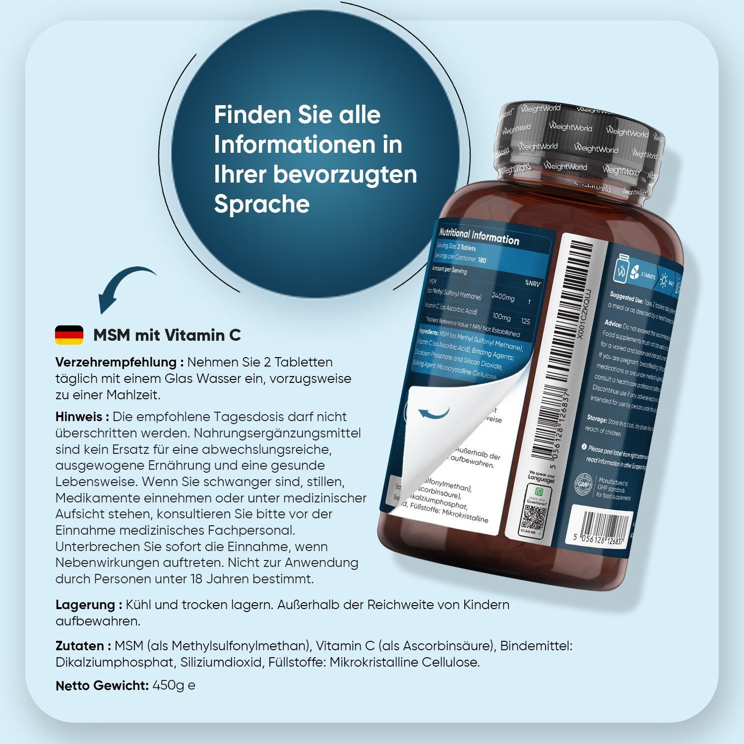 Hochdosiertes MSM mit Vitamin C – Unterstützt Gelenke, Haut & Haare