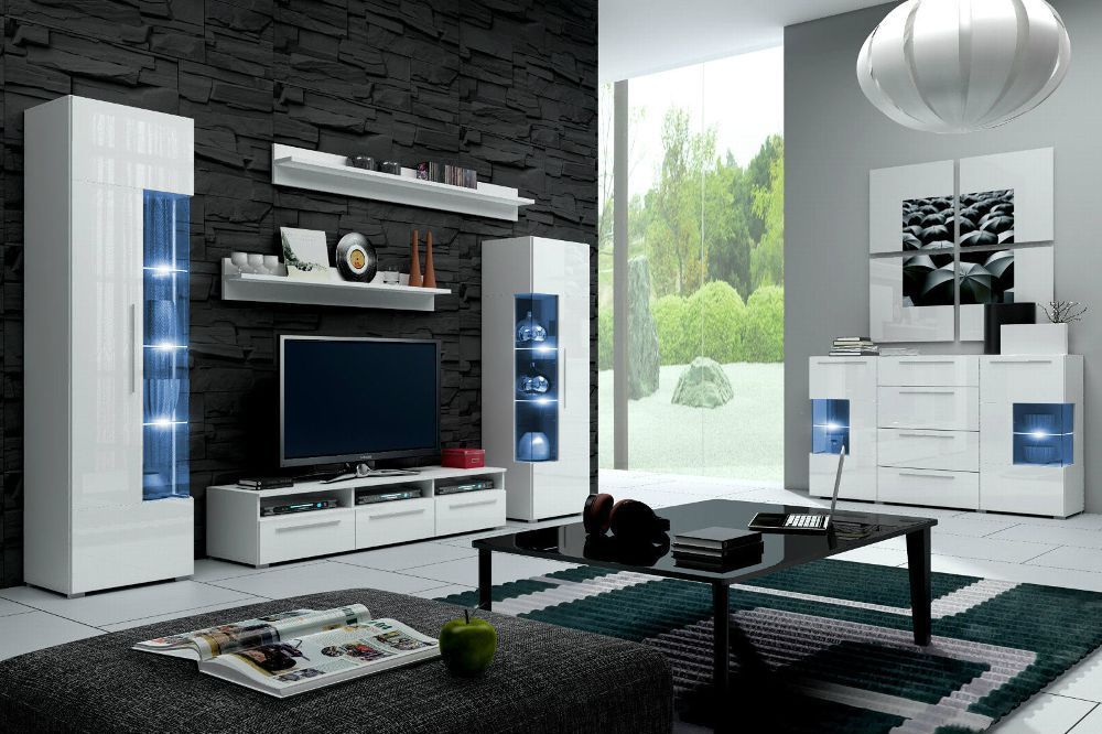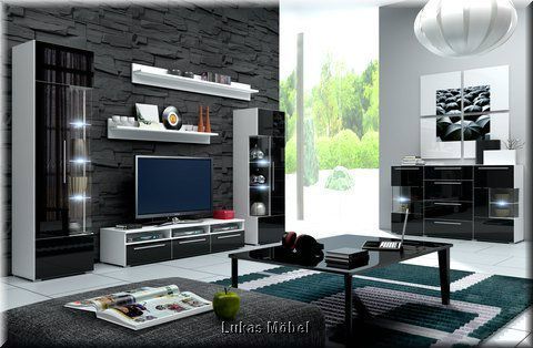 Hochglanz Wohnwand Roma italienisches Design mit LED