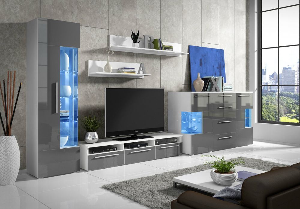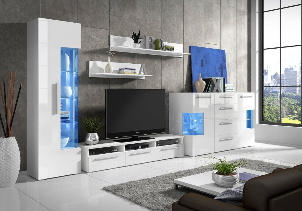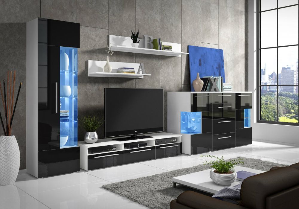 Hochglanz Wohnwand Roma Plus mit Kommode und LED