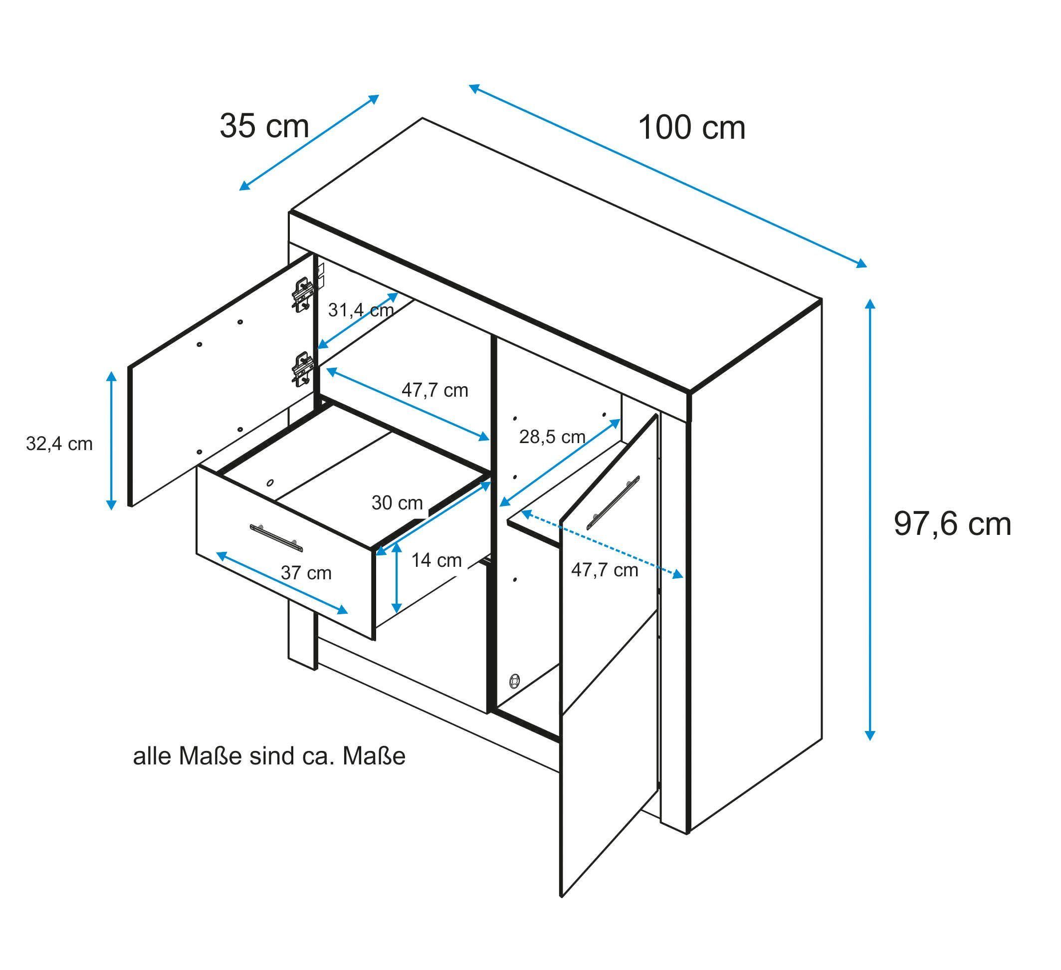Hochkommode Sideboard Wildeiche Schrank Anrichte Metallschaniere #4137