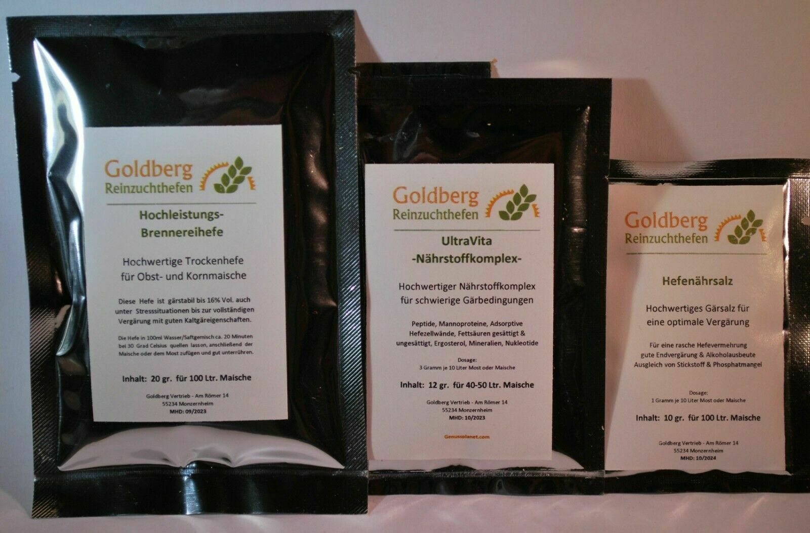 Goldberg Hochleistungs Brennereihefe für 100 Liter Obstmaische + UltraVita + Hefenährsalz