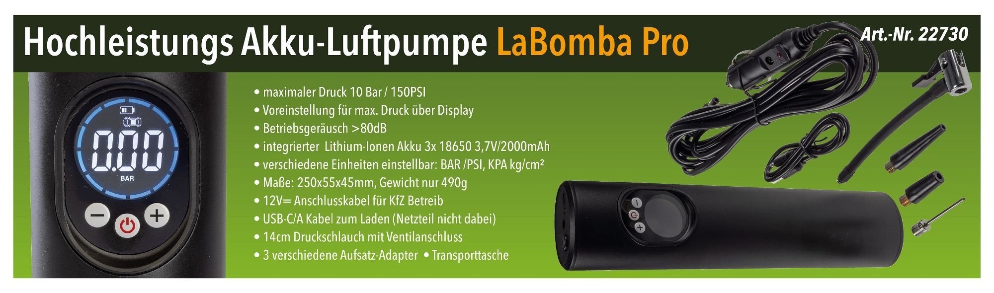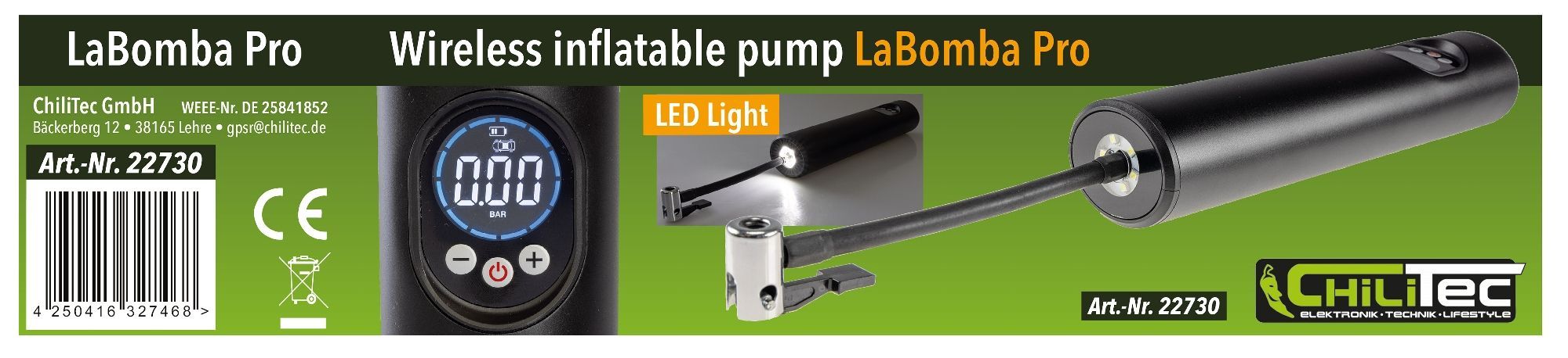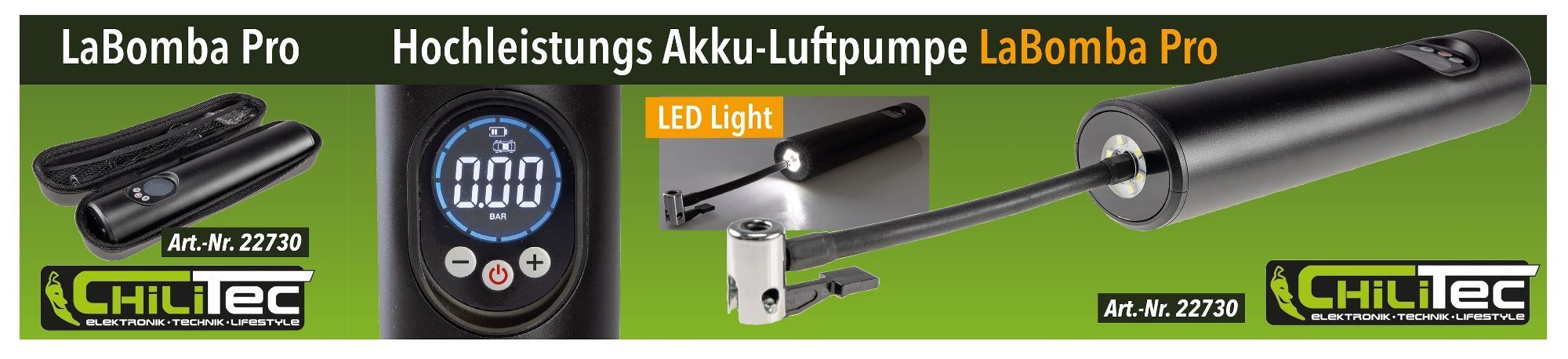 ChiliTec Hochleistungs Luftpumpe "LaBomba Pro" LiIon Akku, Display