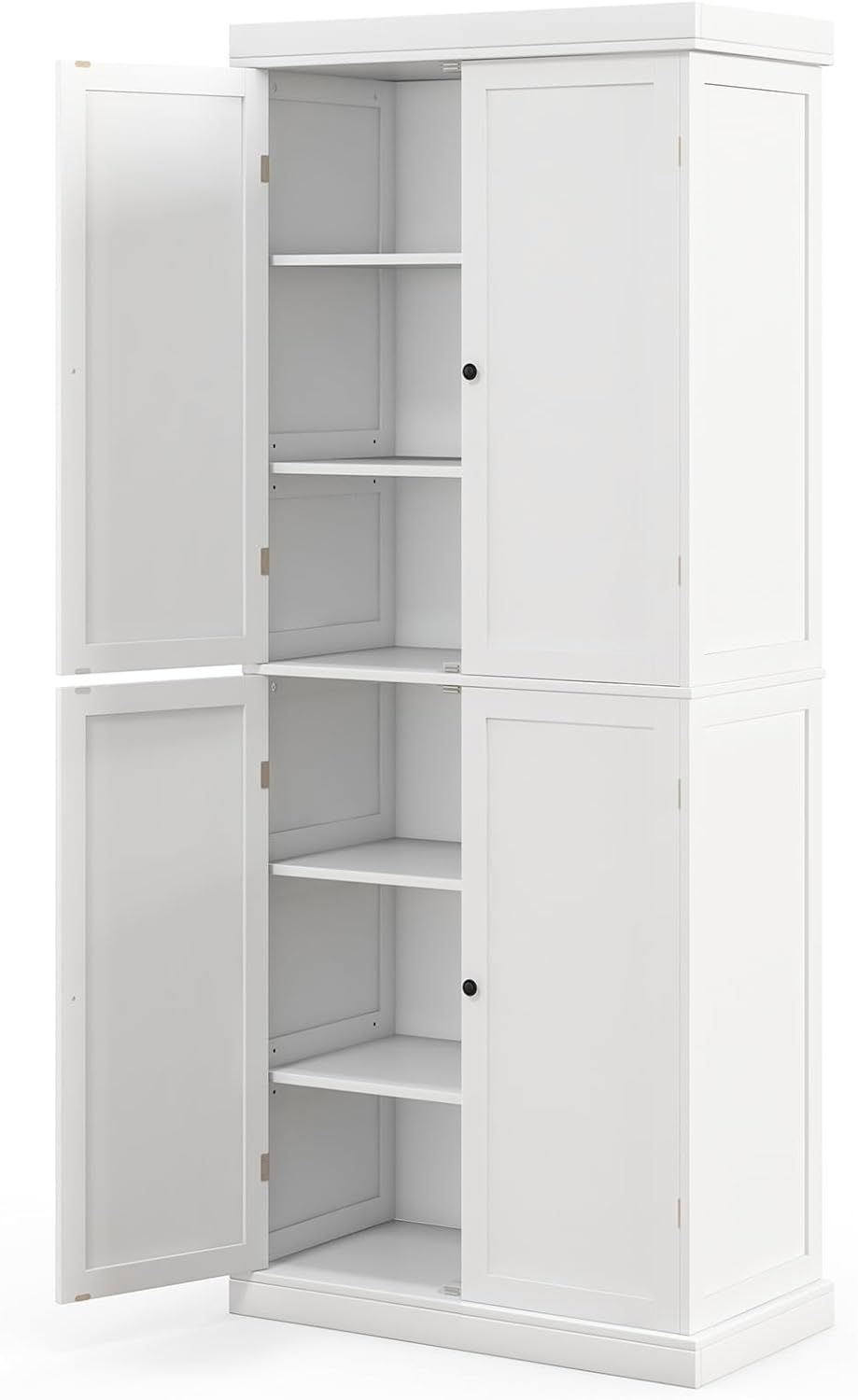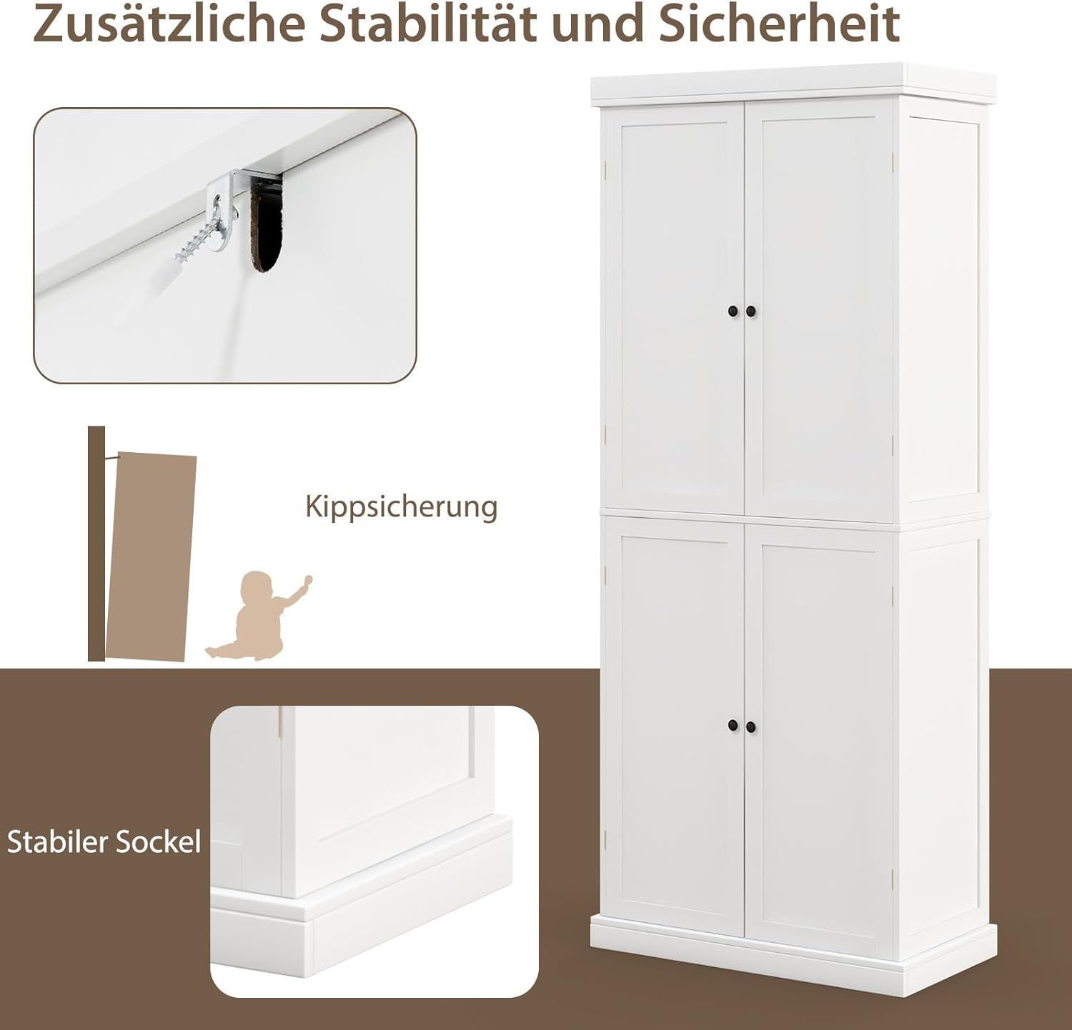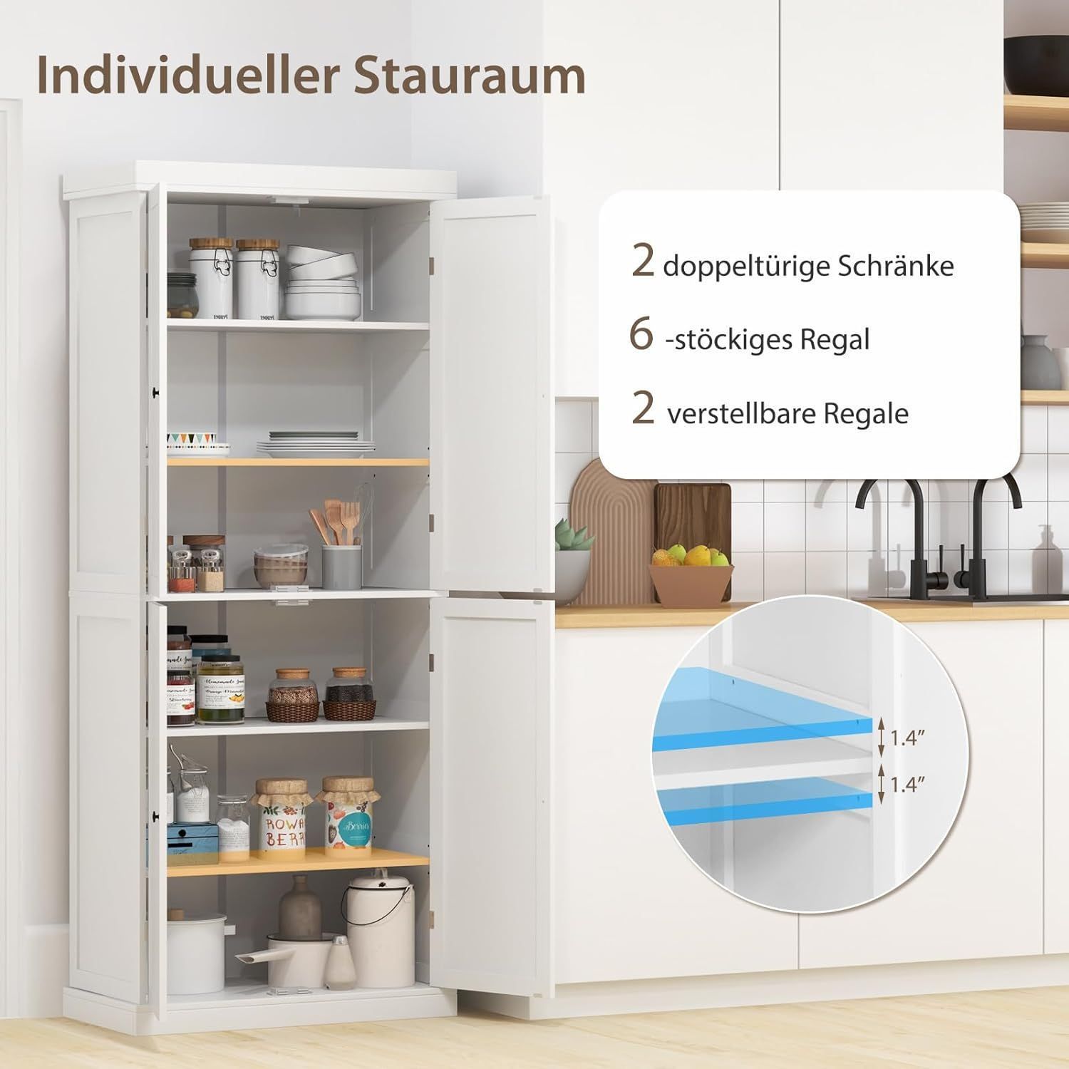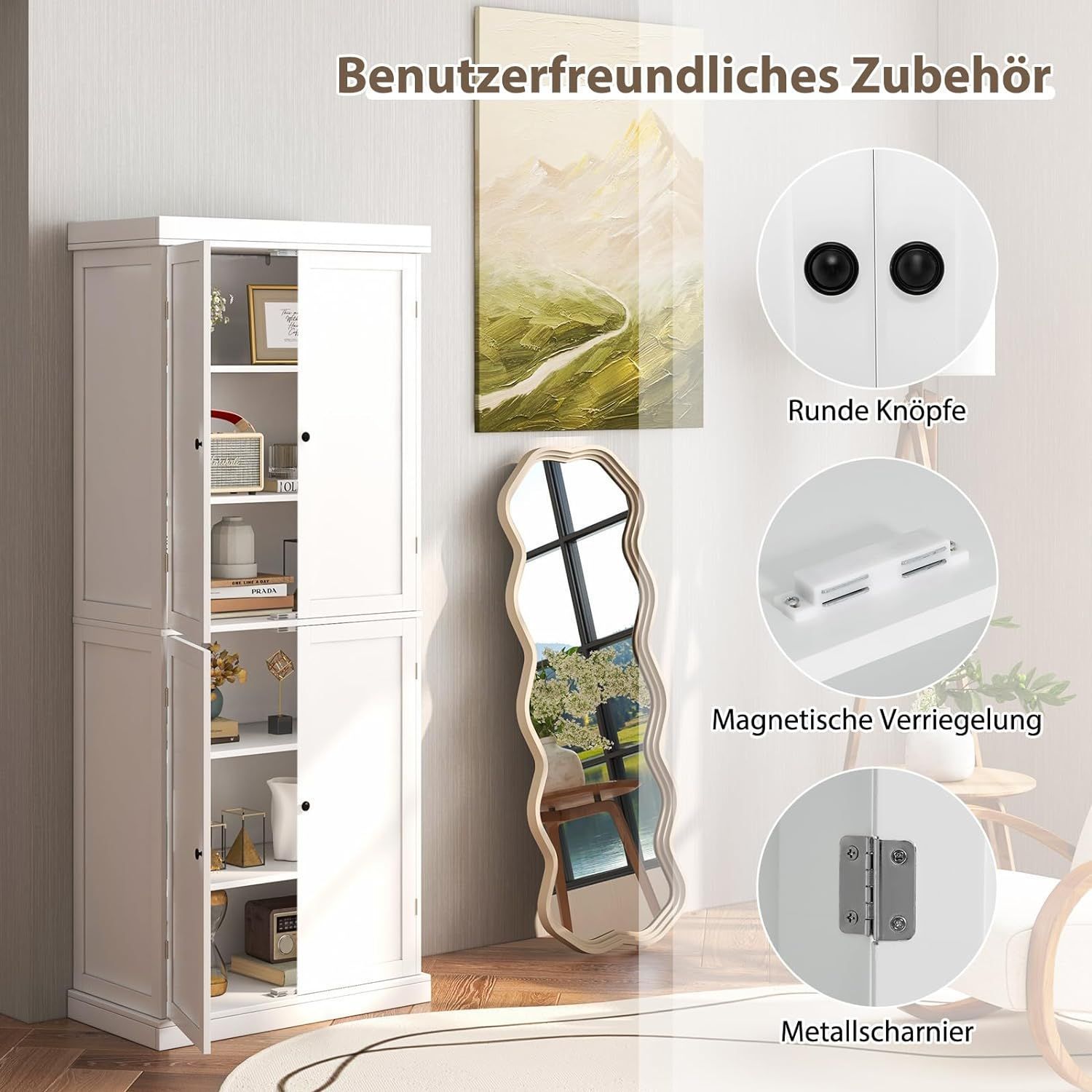 Hochschrank Badezimmerschrank, Vorratsschrank mit 4 Türen & 6 Fächern, Küchenschran