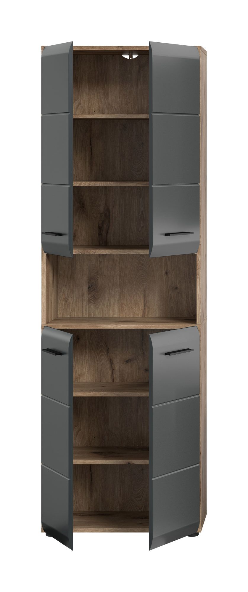 Hochschrank breit in schwarz matt und Nox Oak Nachbildung