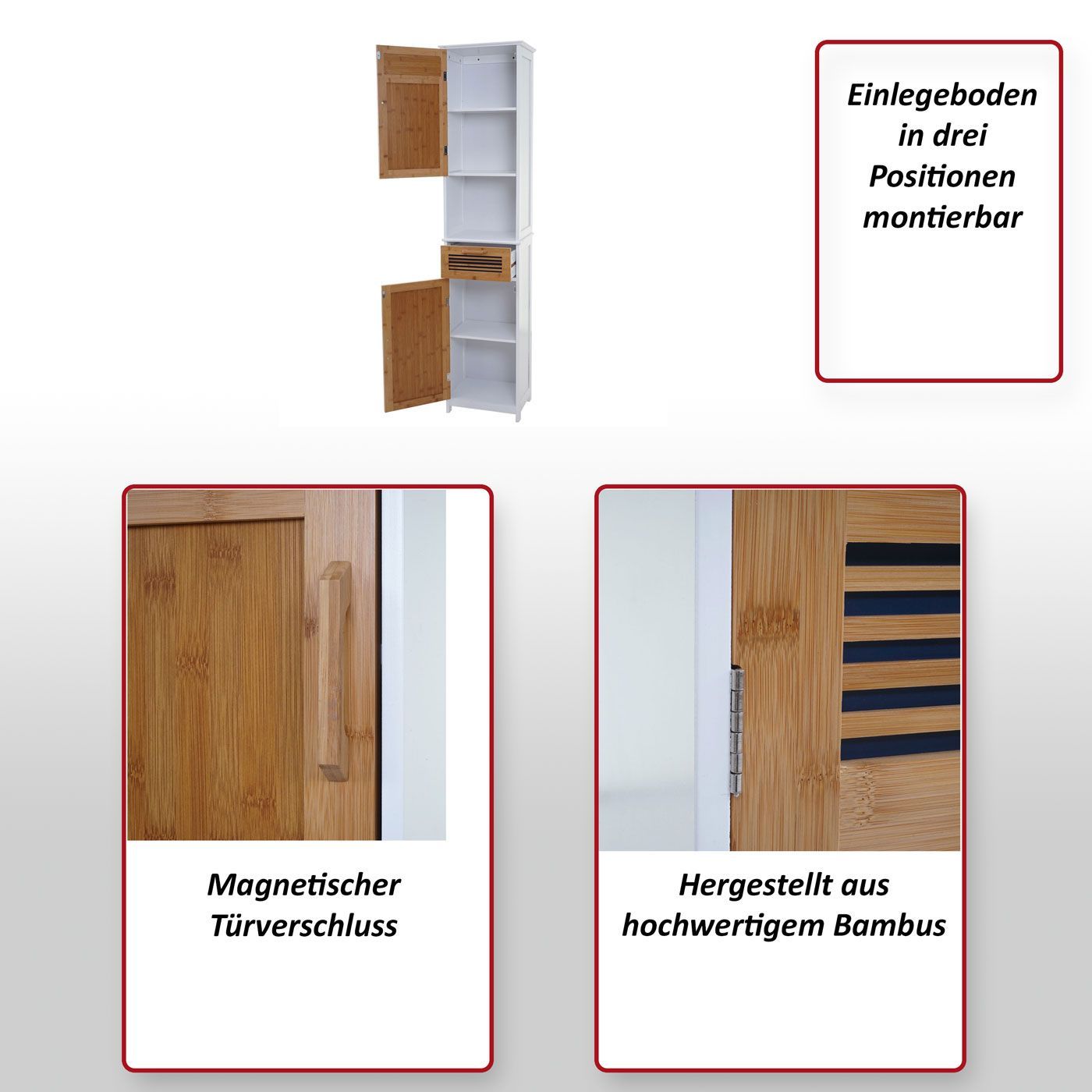 Mendler Hochschrank HWC-A85, Badschrank Badregal Bambus, MVG 180x40x31cm weiß