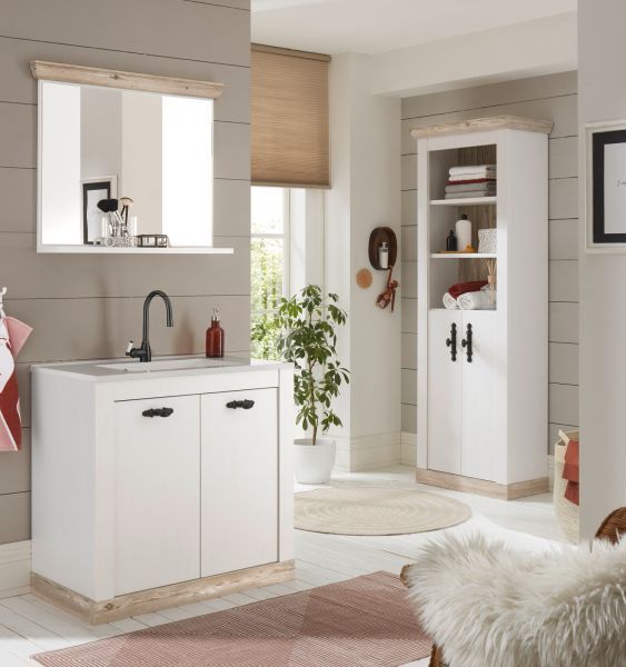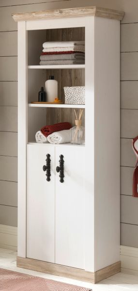 Hochschrank weiß Pinie Badezimmer Bad Schrank 2-türig 65 cm Badmöbel Regal Rovola