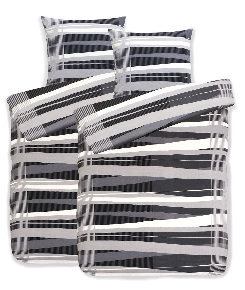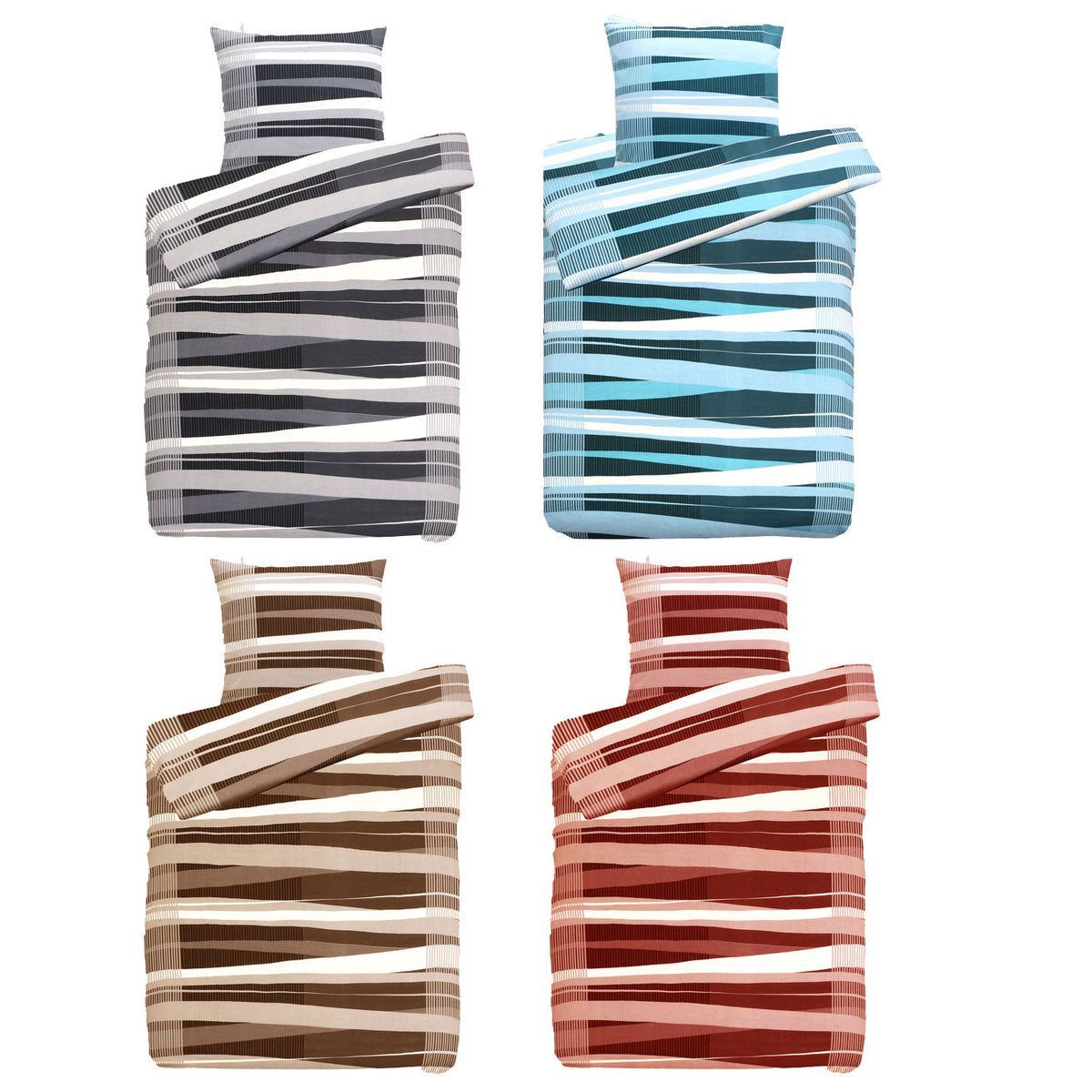 Hochwertige Biber Bettwäsche Baumwolle Streifen 2tlg. 4tlg. 135x200 80x80
