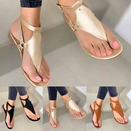 Hochwertige Damensandalen Schuhe flache Gladiator Hausschuhe kunstlich PU Stran